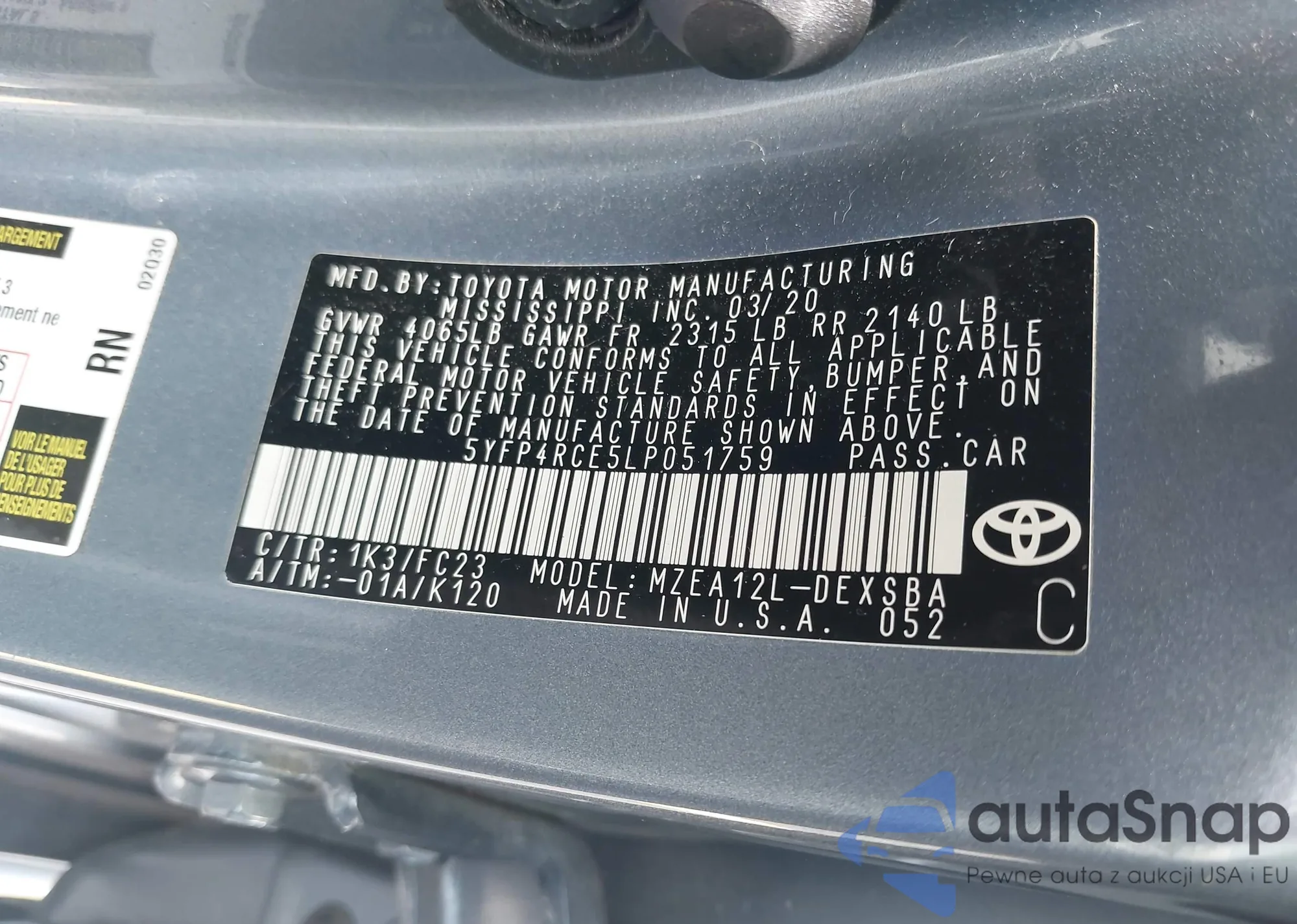 LOT: 42634855 VIN: 5YFP4RCE5LP051759