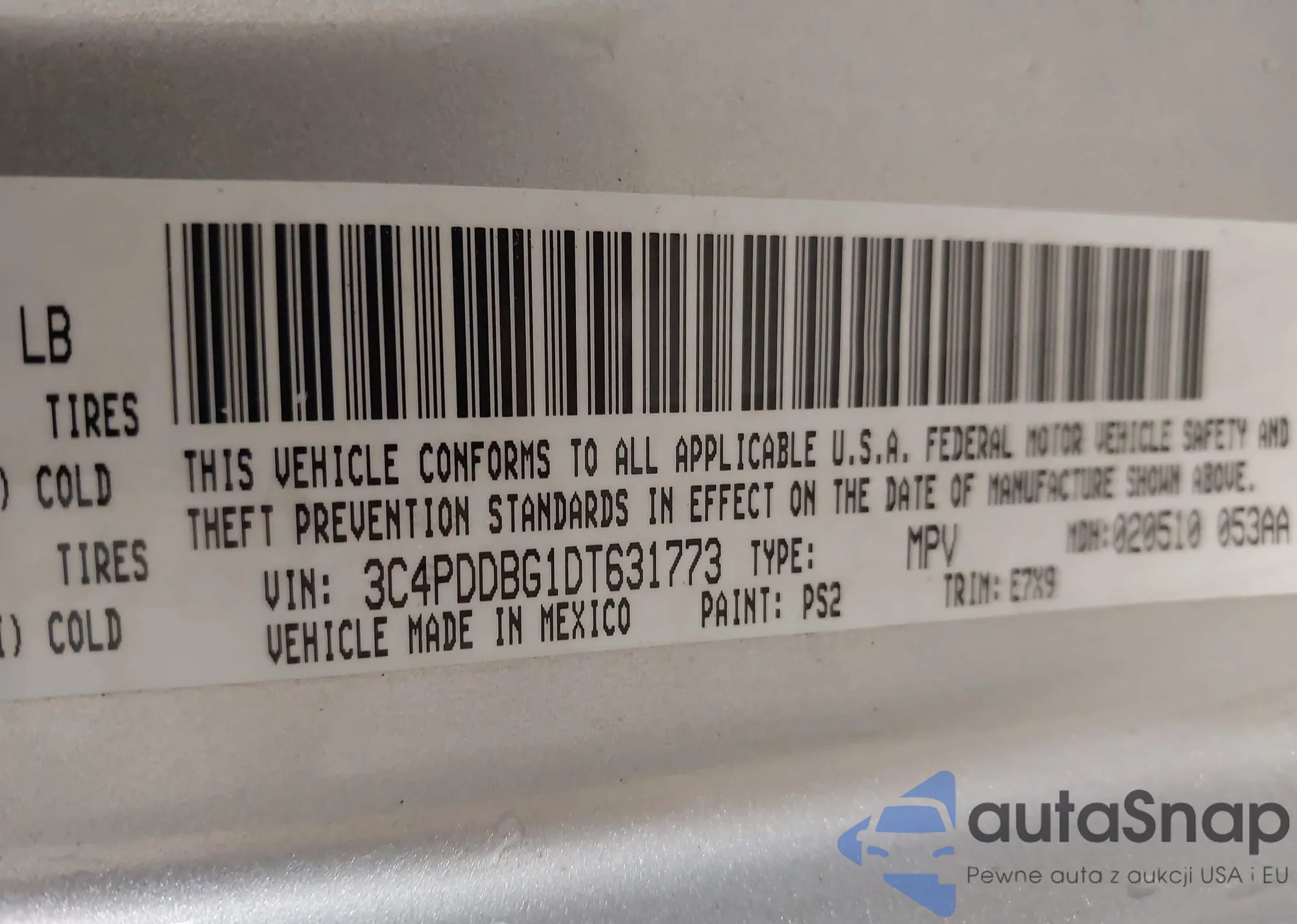 • VIN 1C3CDZCB2DN614225