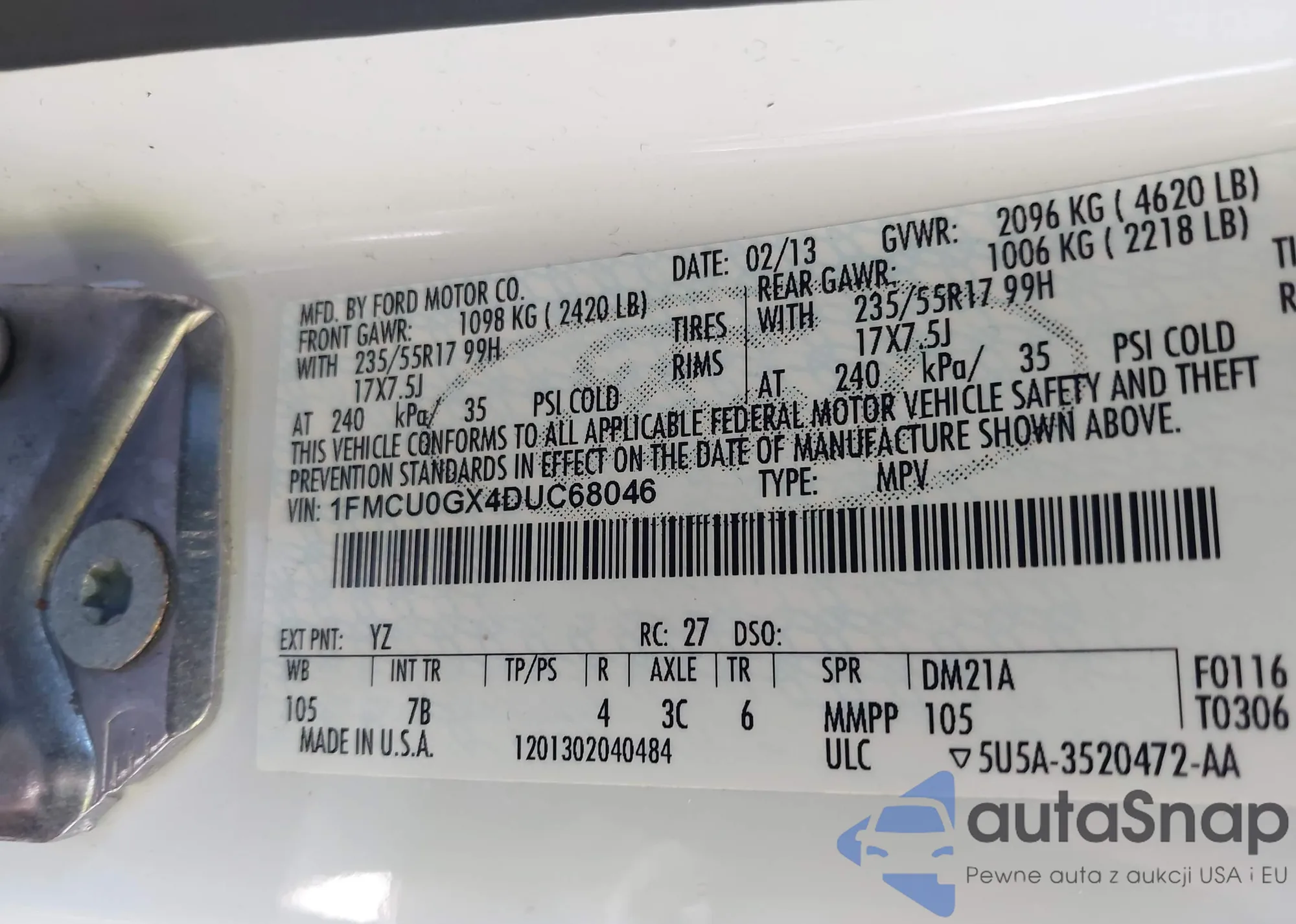 LOT: 42839369 VIN: 1FMCU0GX4DUC68046