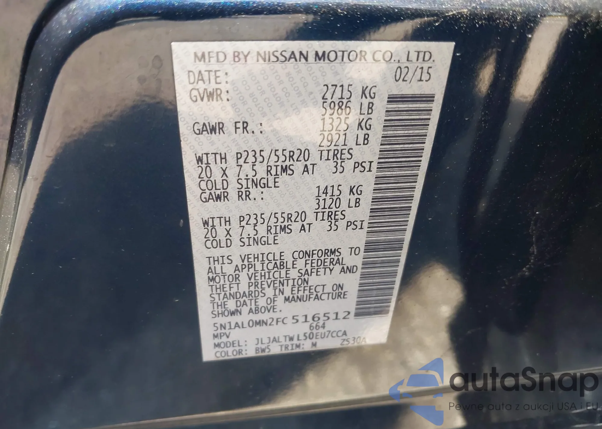 • VIN 5N1AL0MN2FC516512
