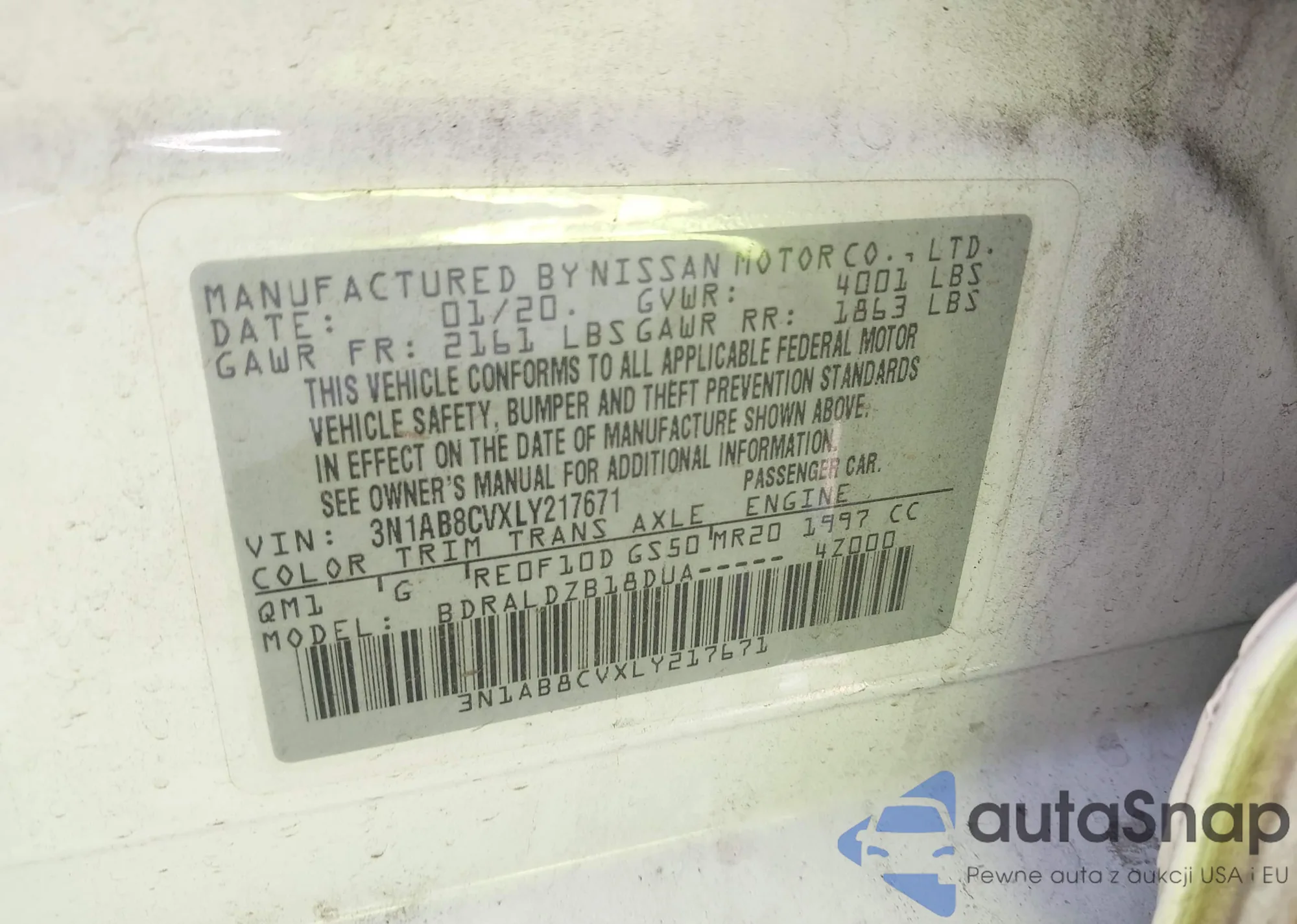 • VIN 3N1AB8CVXLY217671