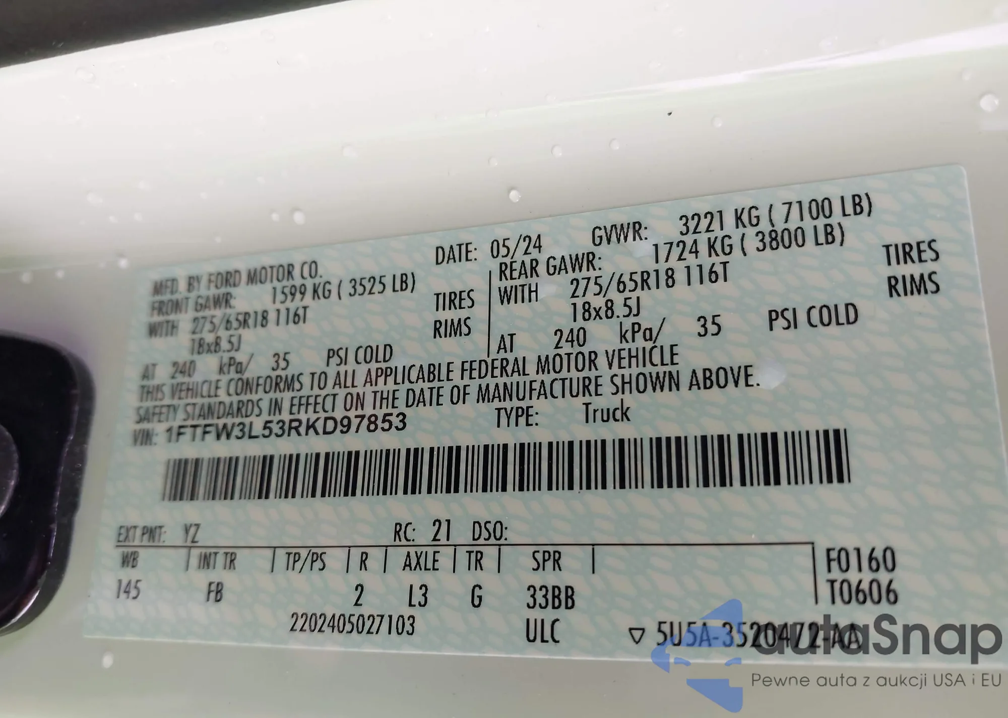 LOT: 41919956 VIN: 1FTFW3L53RKD97853