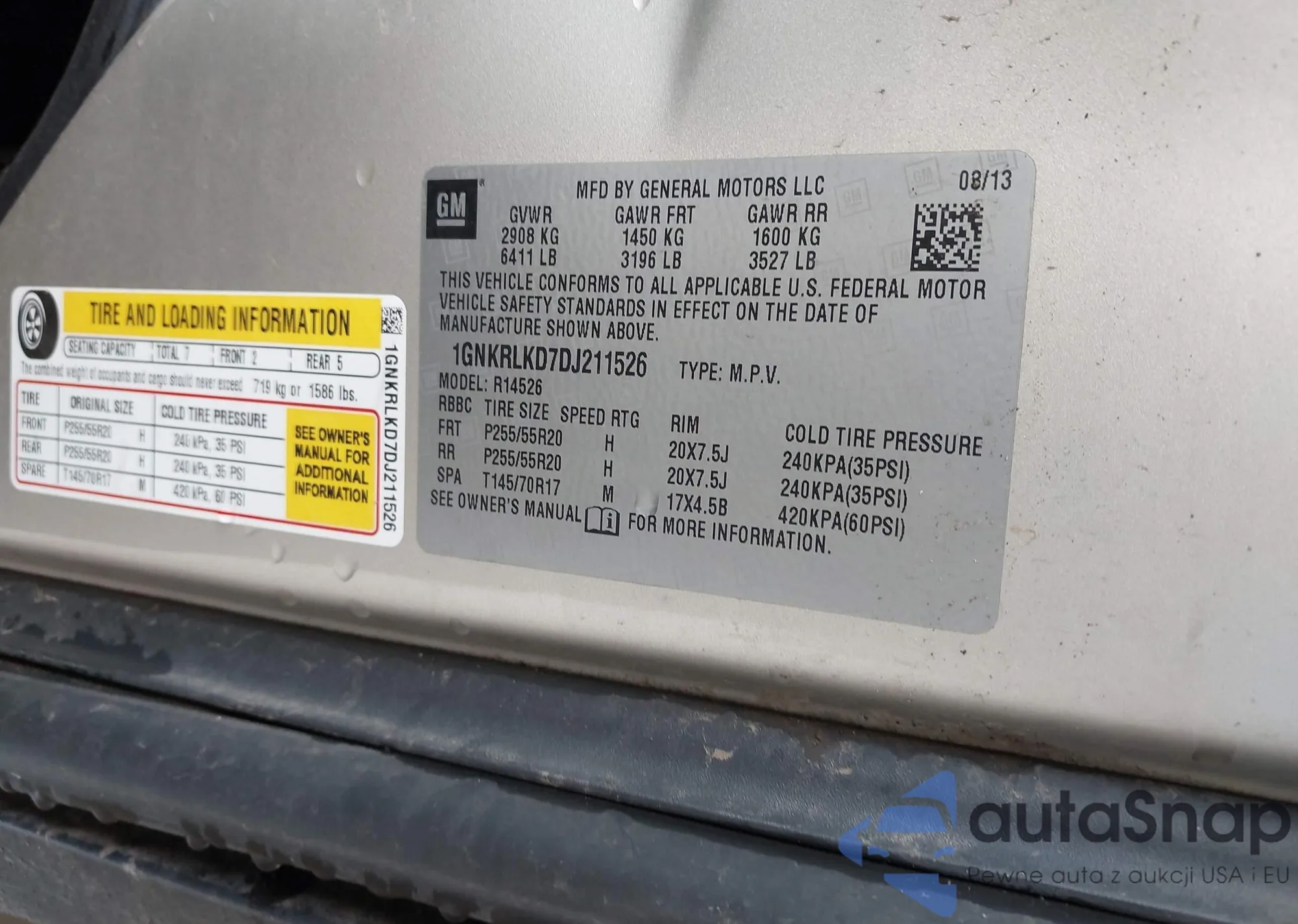 LOT: 42119405 VIN: 1GNKRLKD7DJ211526