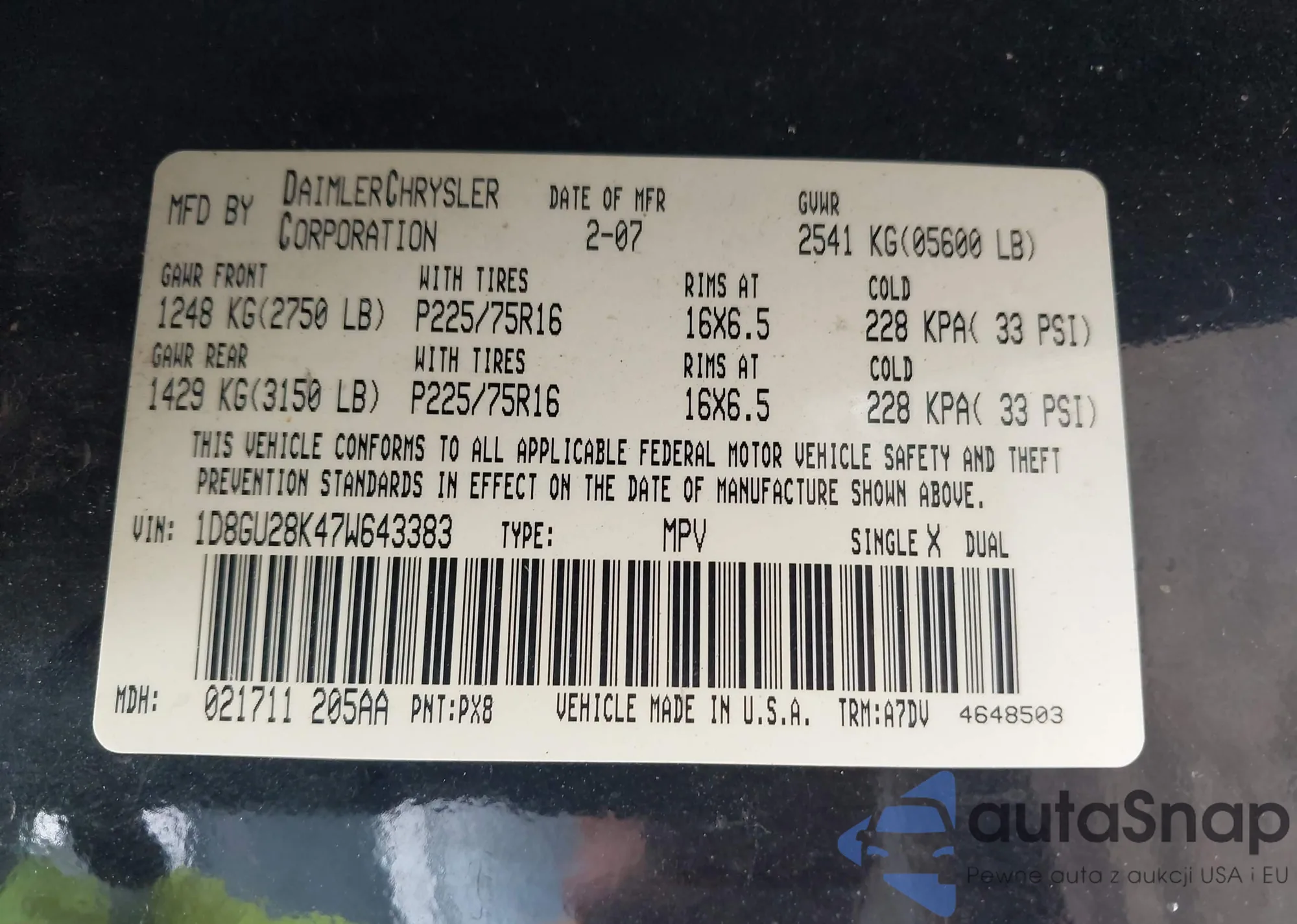 • VIN 1D8GU28K47W643383