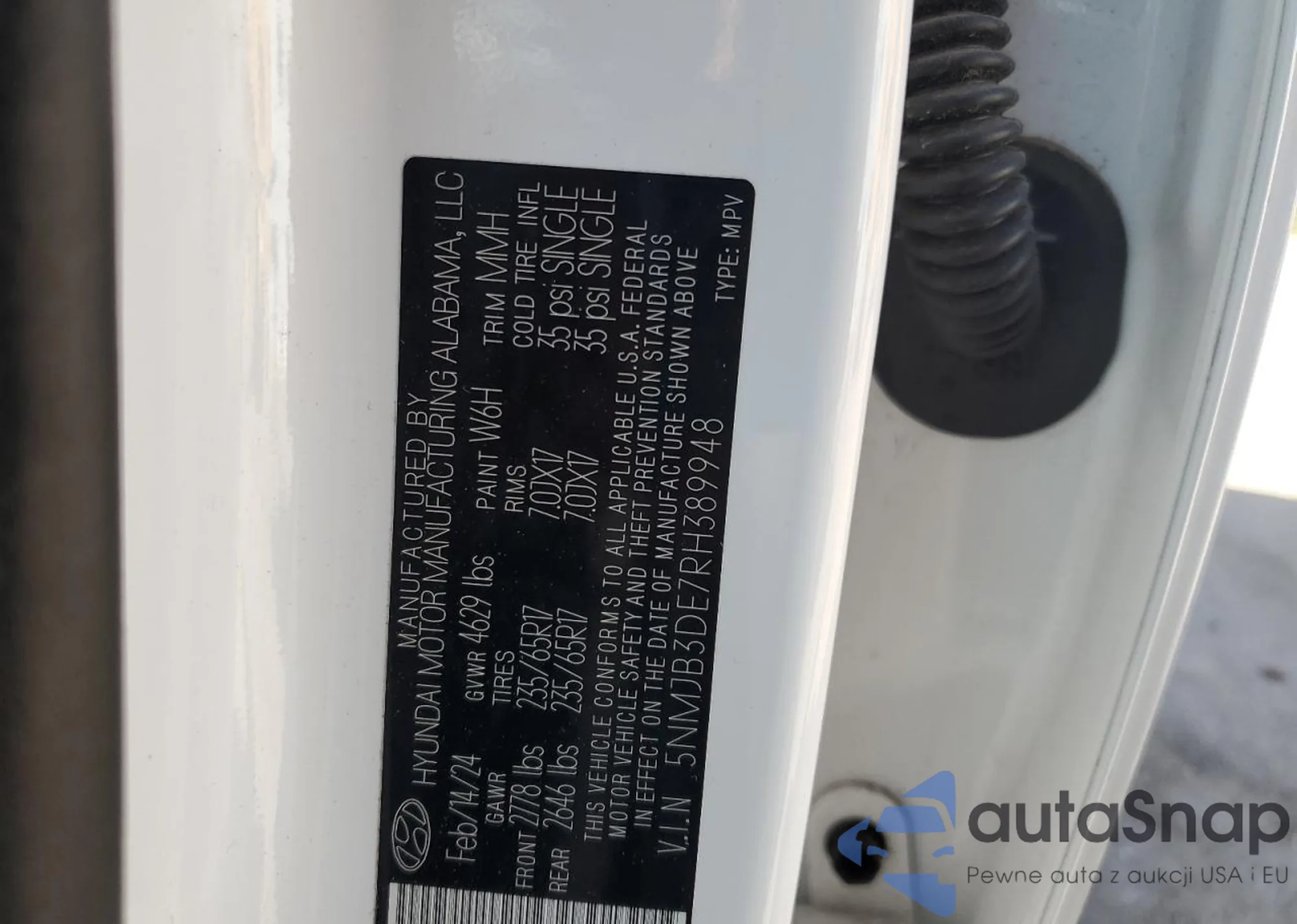 • VIN 5NMJB3DE7RH389948