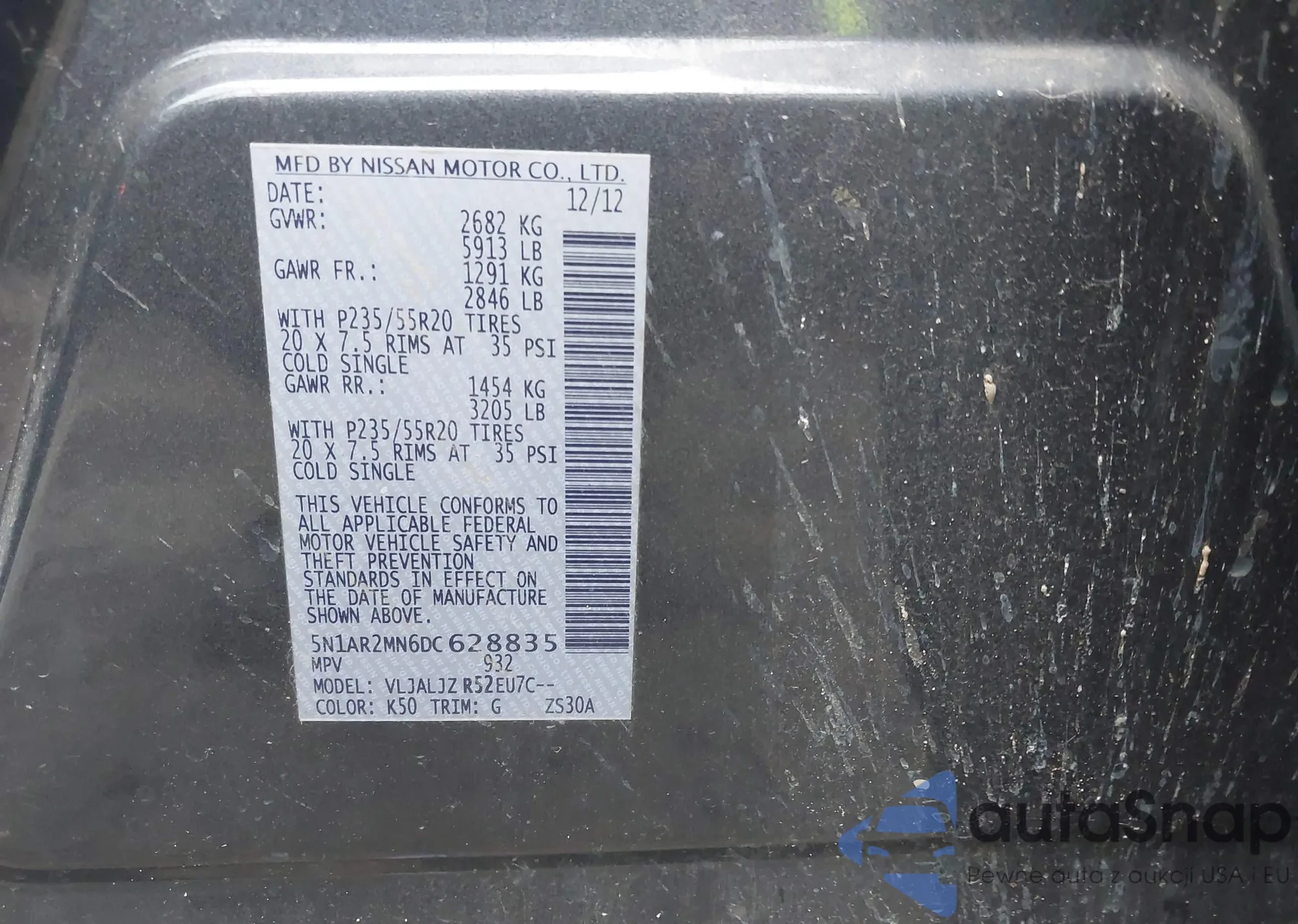 • VIN 5N1AR2MN6DC628835