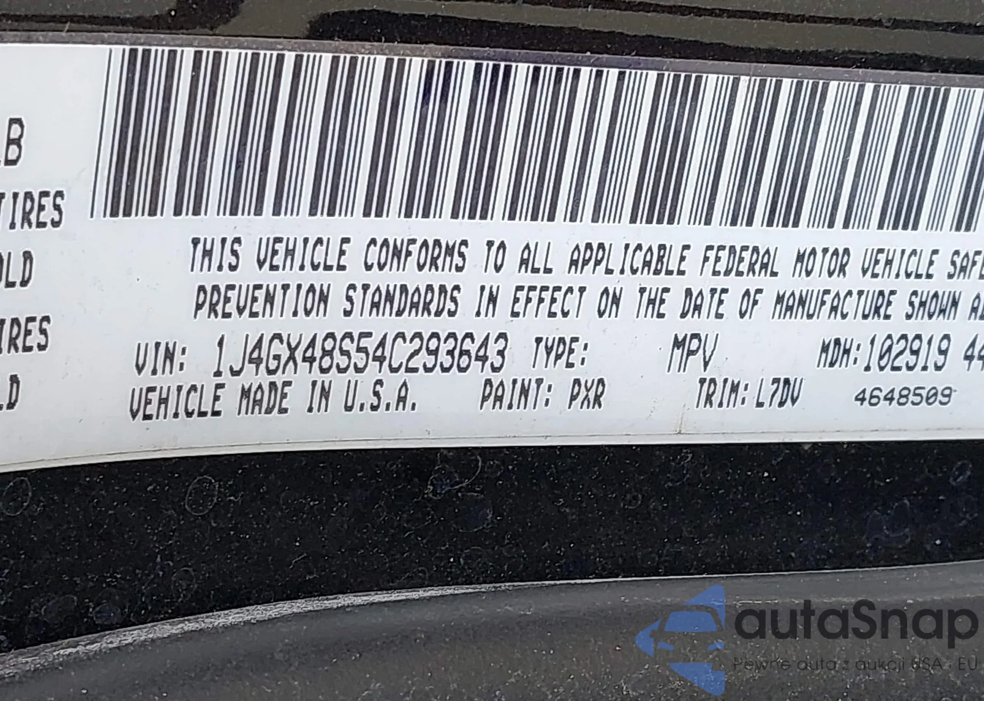 LOT: 42925926 VIN: 1J4GX48S54C293643