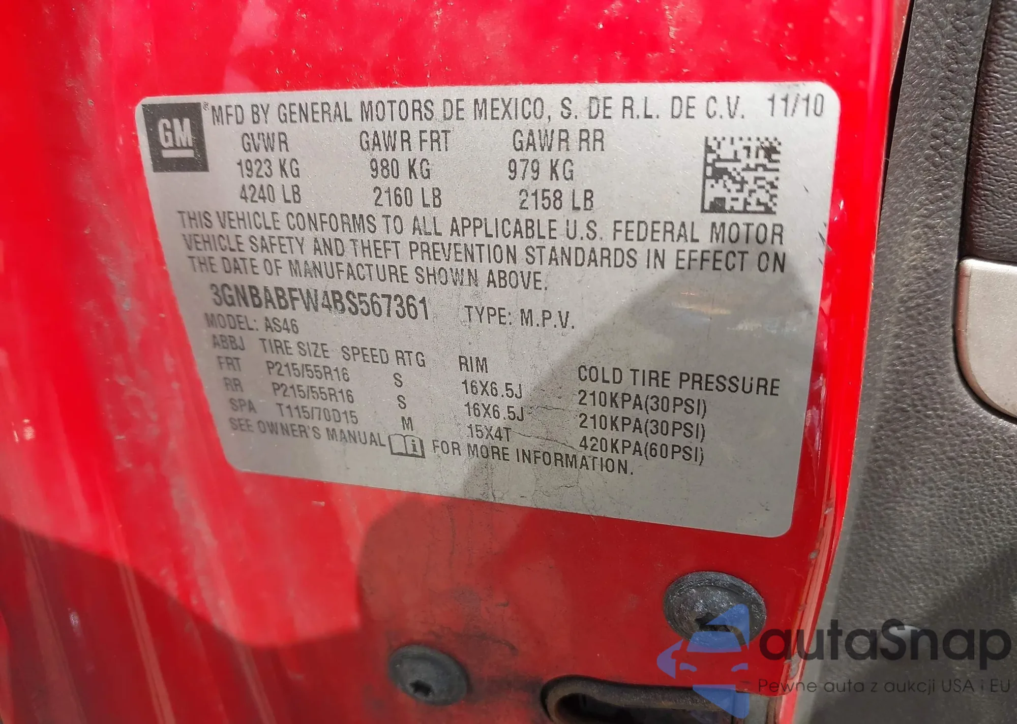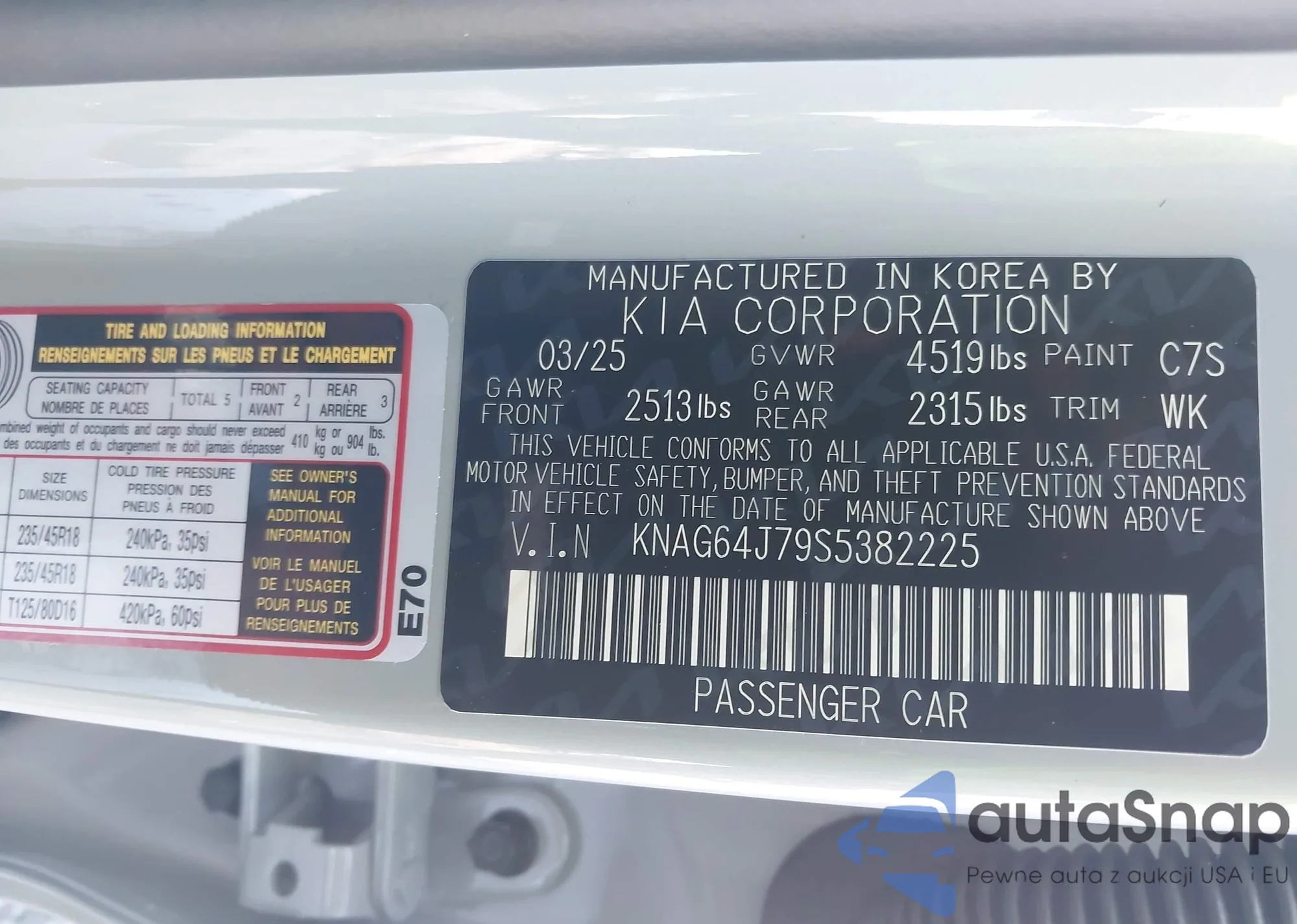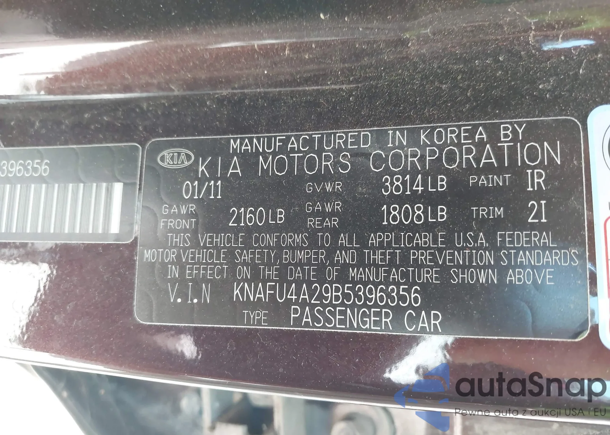 • VIN KNAFU4A29B5396356