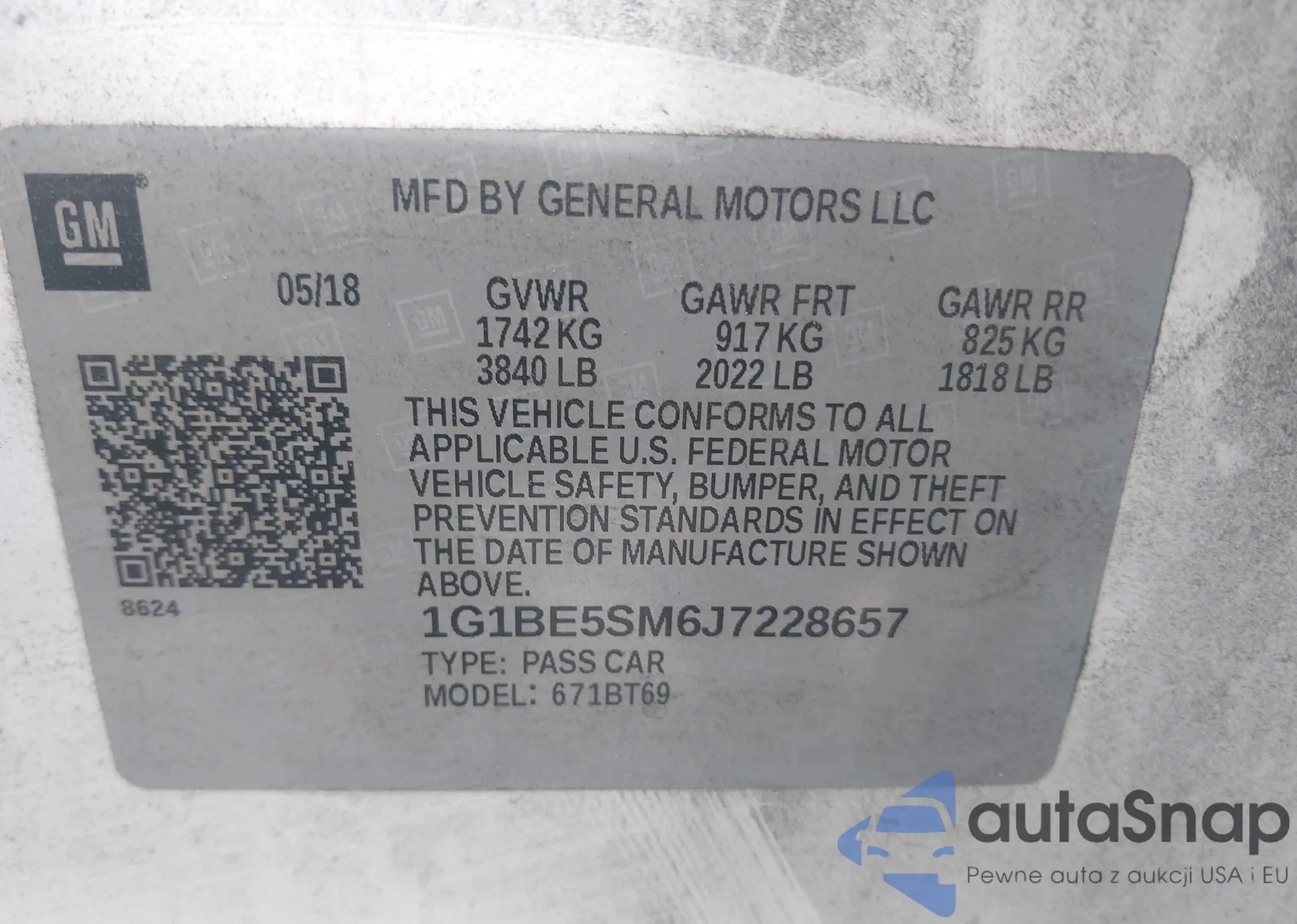 LOT: 42757445 VIN: 1G1BE5SM6J7228657
