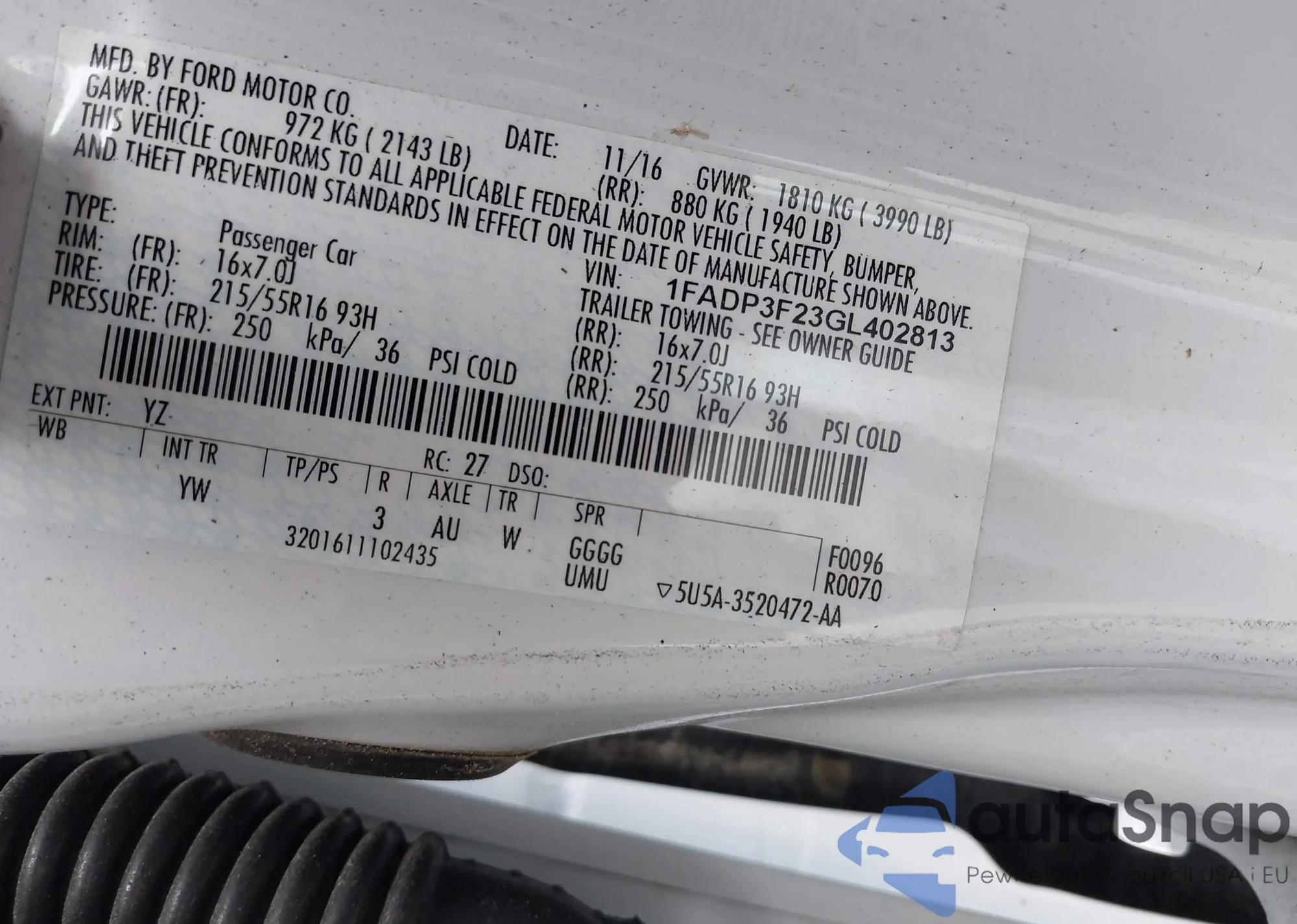 LOT: 42773766 VIN: 1FADP3F23GL402813