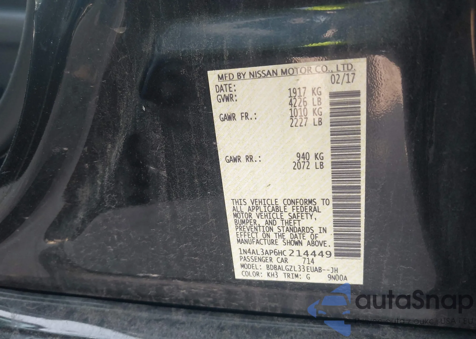 • VIN 1N4AL2APXBN514744