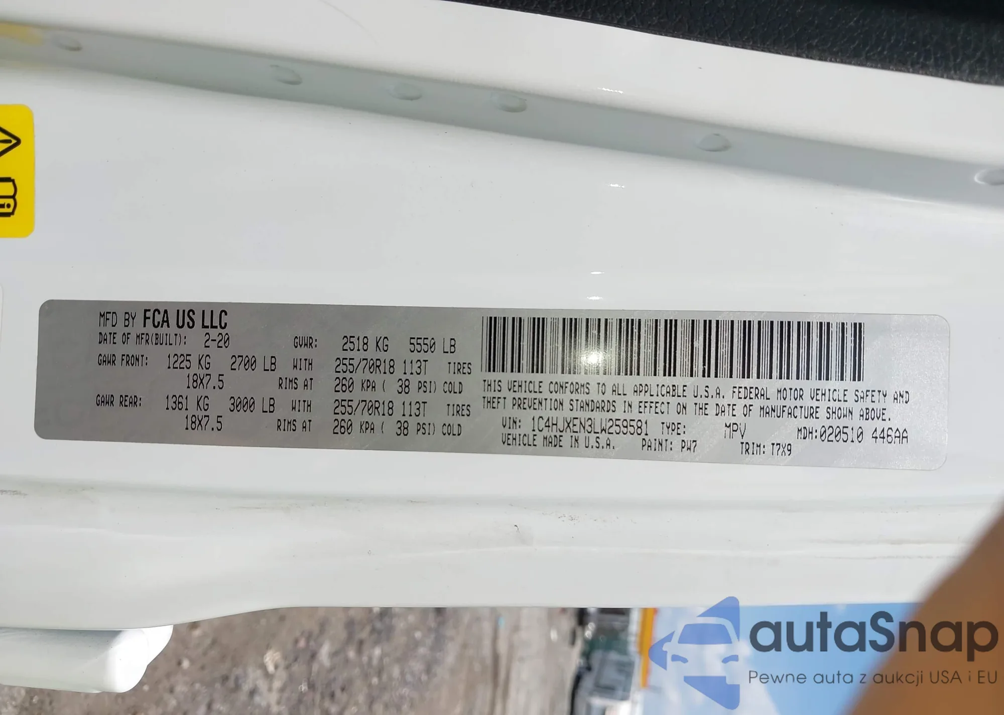• VIN 1C4HJXEN3LW259581