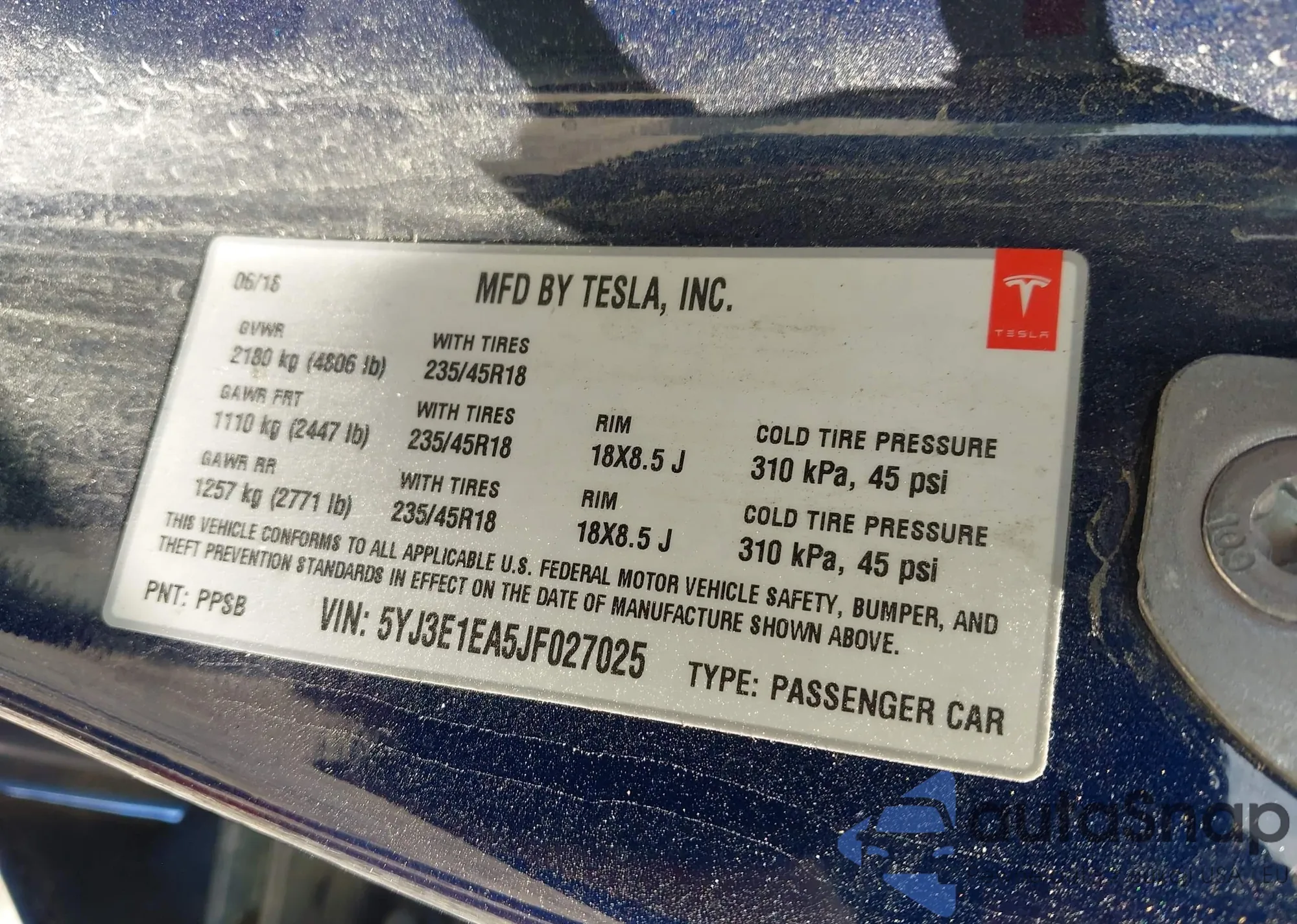 • VIN 5YJ3E1EA5JF027025