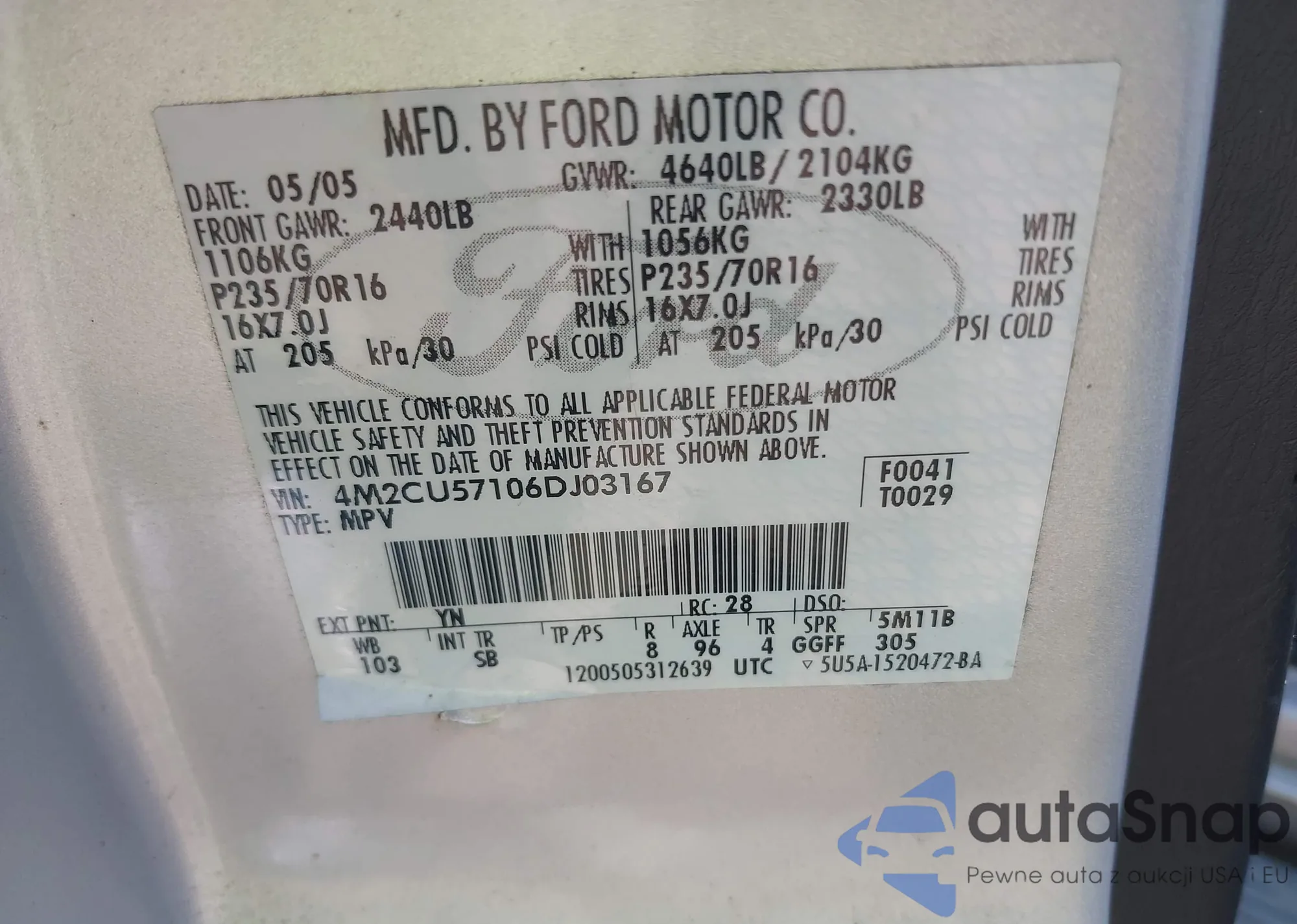 • VIN 4M2CU57106DJ03167
