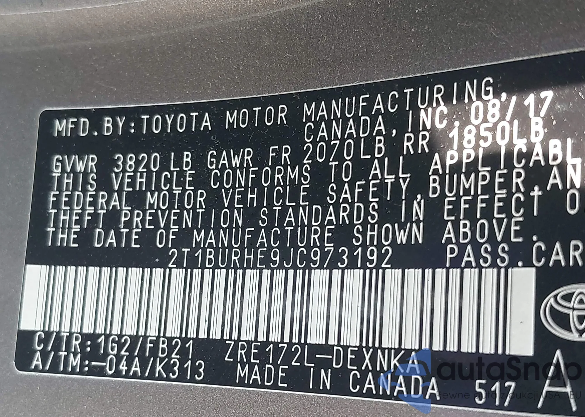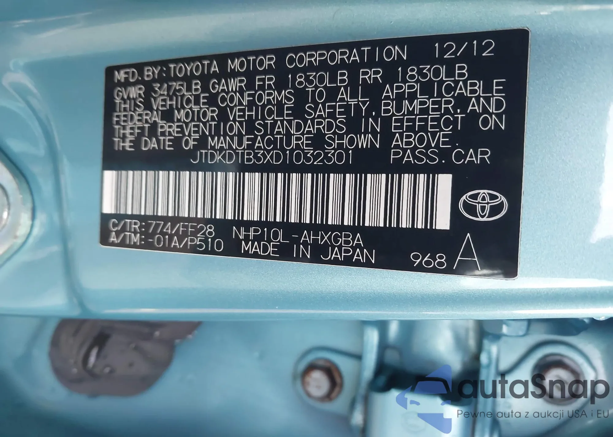 • VIN JTDKDTB3XD1032301