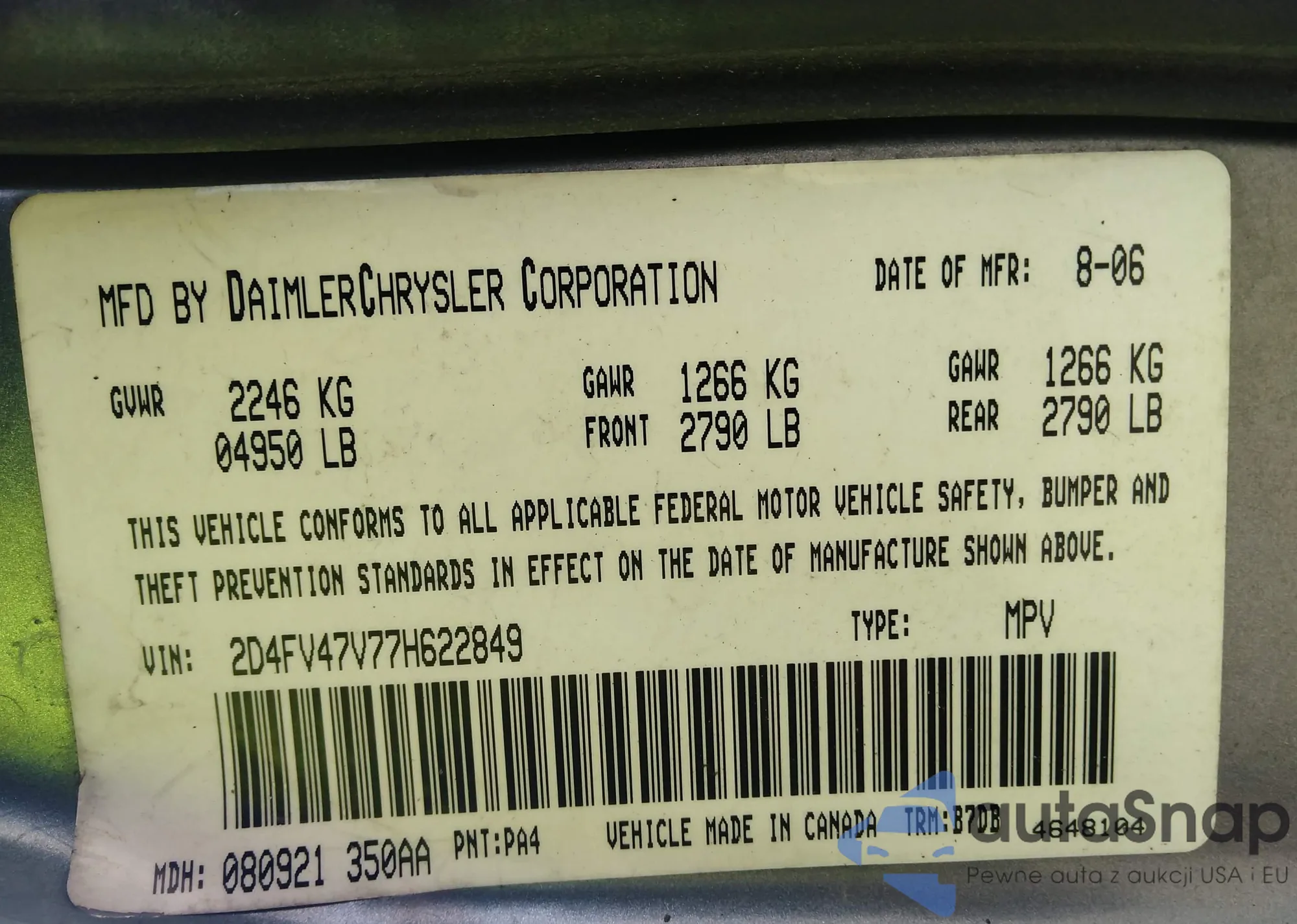 • VIN 2D4FV47V77H622849