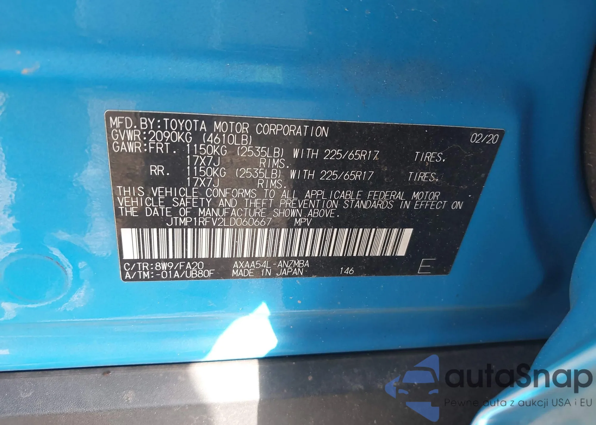 LOT: 42662243 VIN: JTMP1RFV2LD060667
