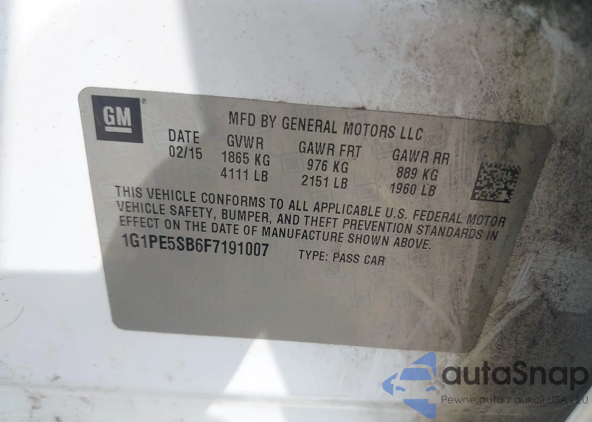 LOT: 42706446 VIN: 1G1PE5SB6F7191007