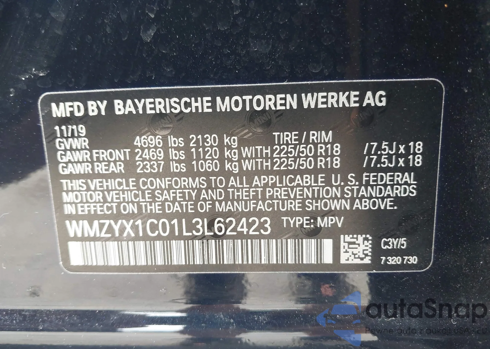LOT: 42724273 VIN: WMZYX1C01L3L62423