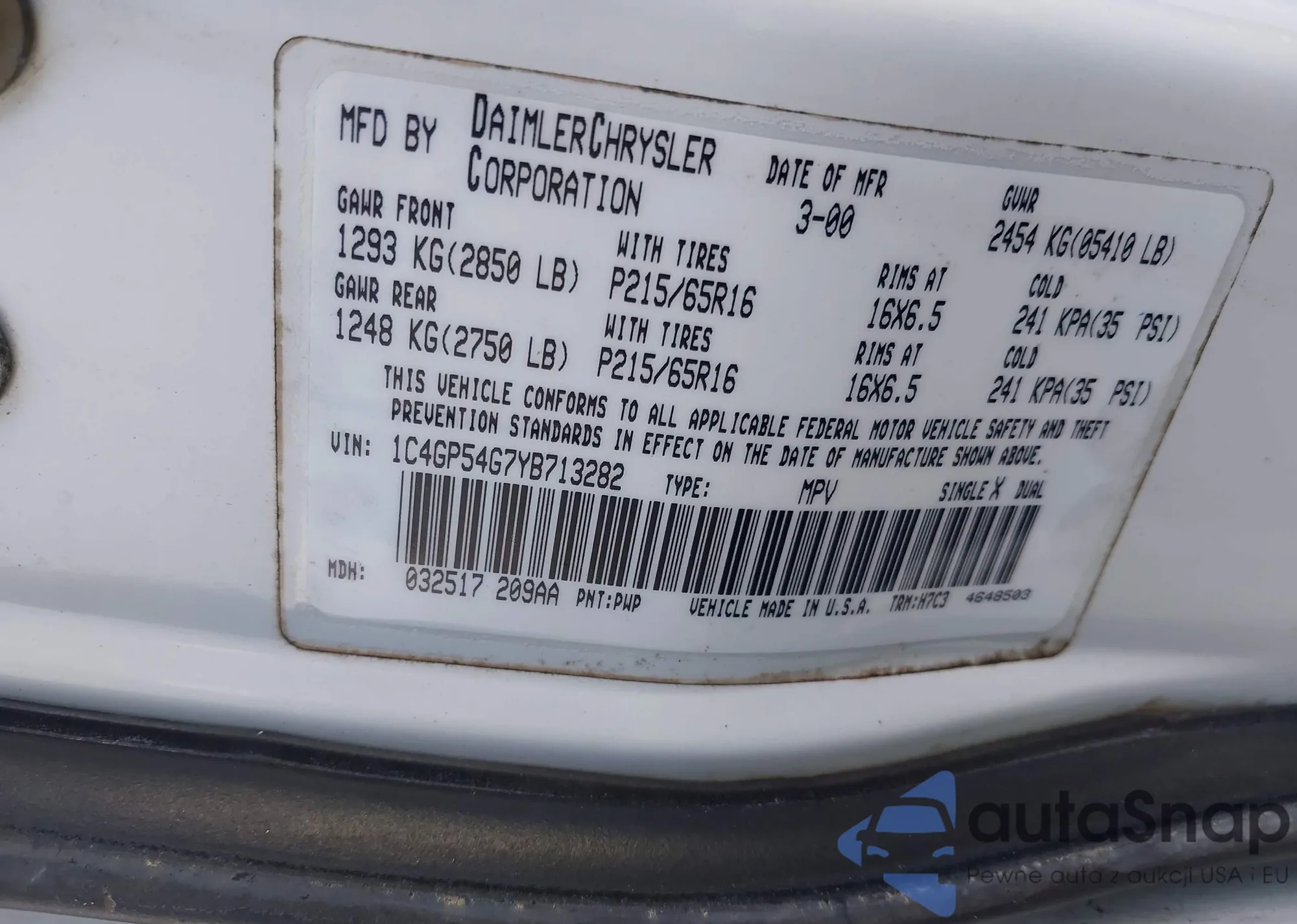 • VIN 1C4GP54G7YB713282