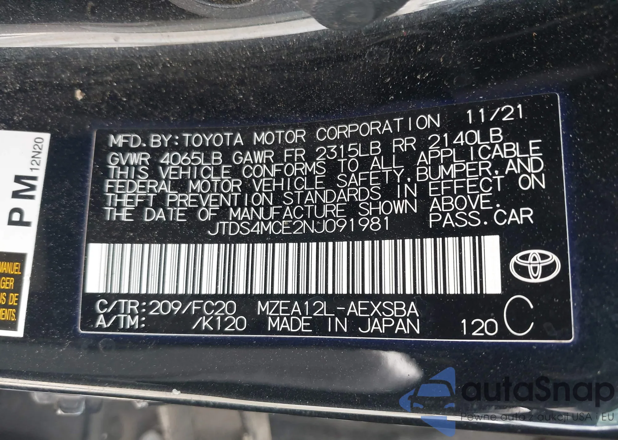 LOT: 42705888 VIN: 2T3BFREV4DW109594