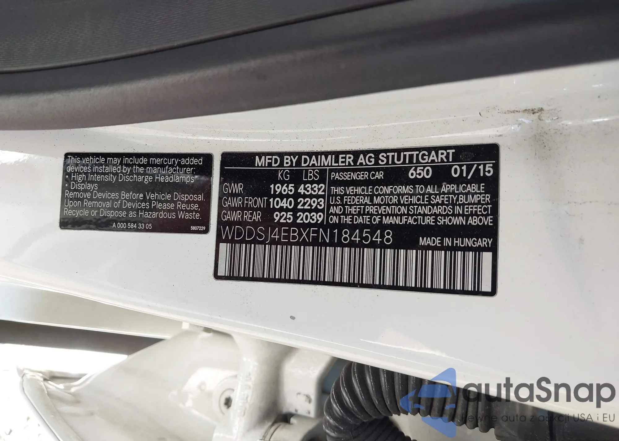 LOT: 42686167 VIN: WD3PF4CC7B5524093