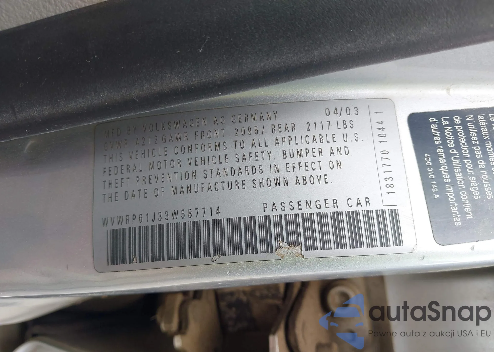 • VIN WVWRP61J33W587714