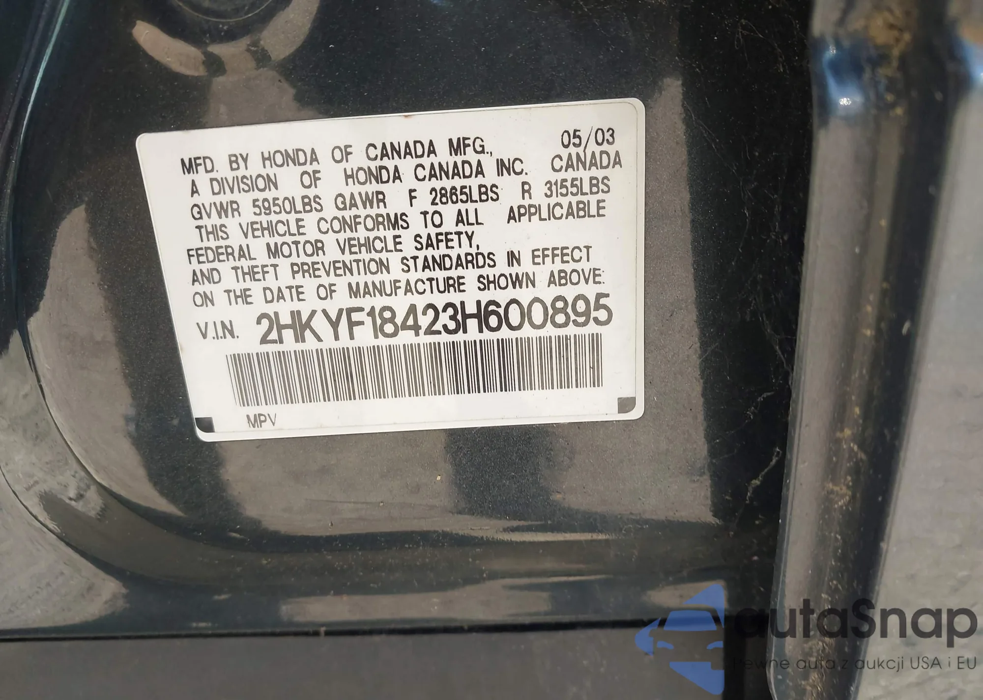 • VIN 1HGCP26419A071764