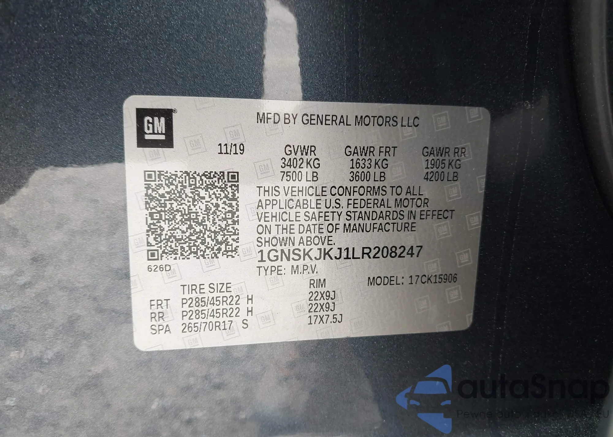 • VIN 1GNSKJKJ1LR208247