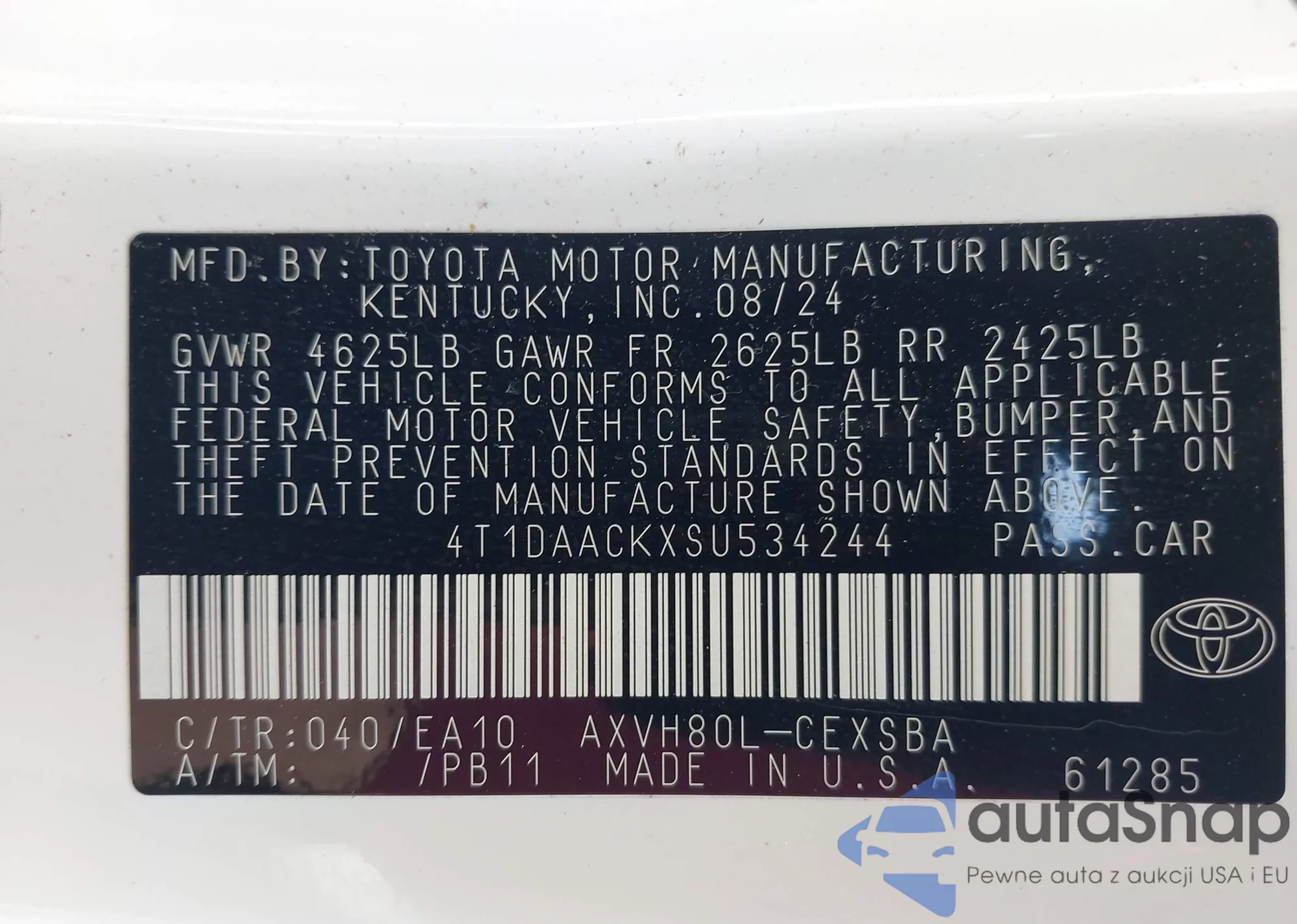 • VIN 4T1DAACKXSU534244