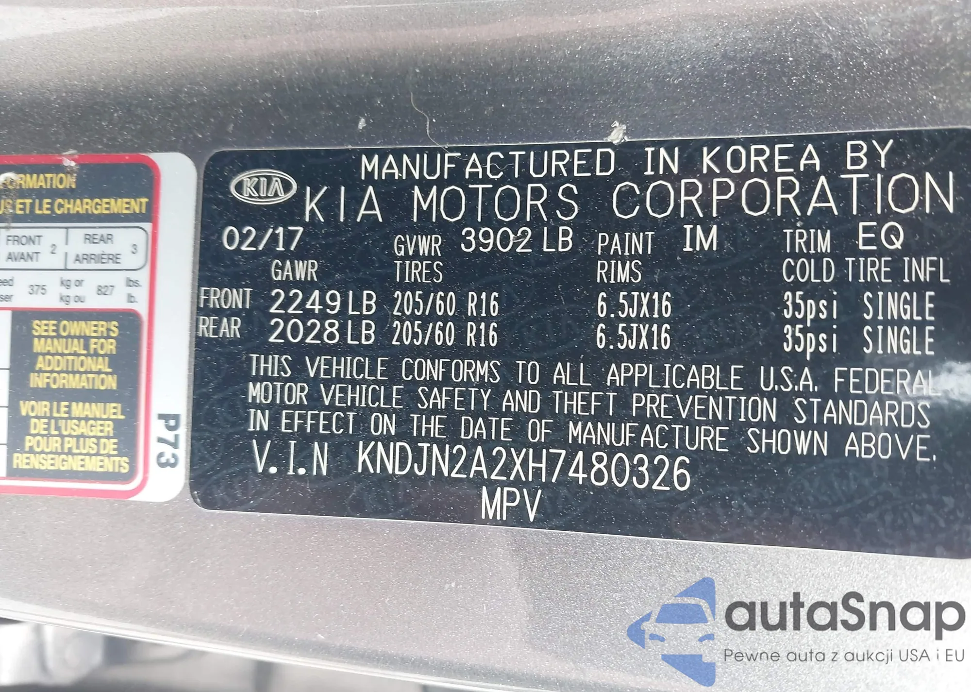 • VIN KNAFU4A21C5554187
