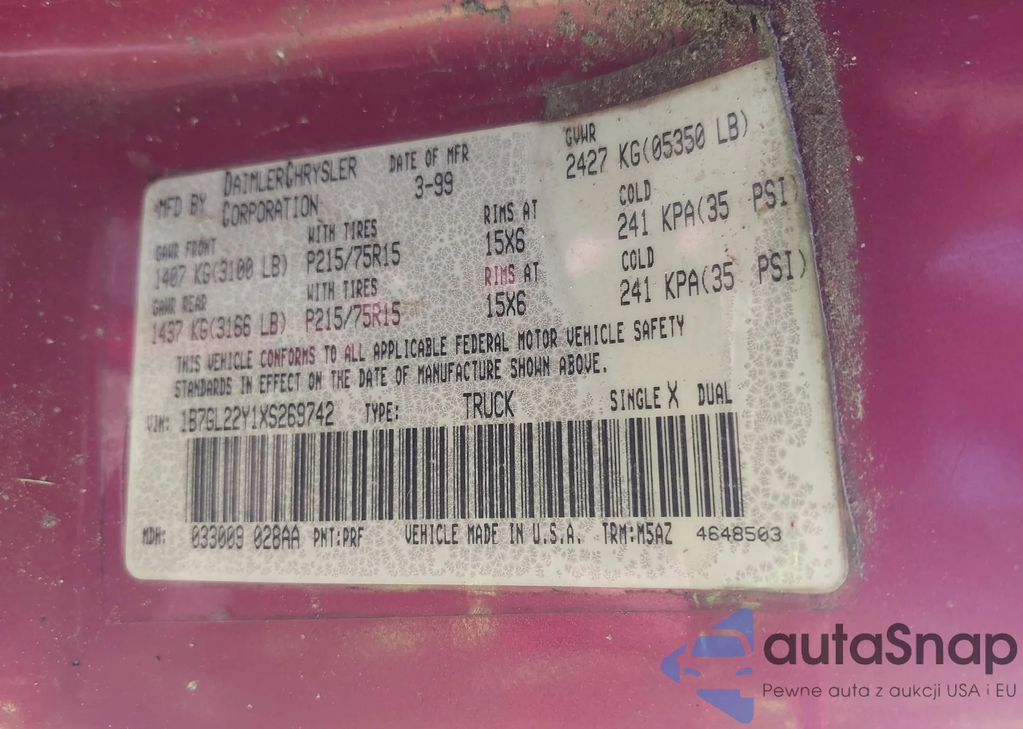 • VIN 2B8GP44351R308080