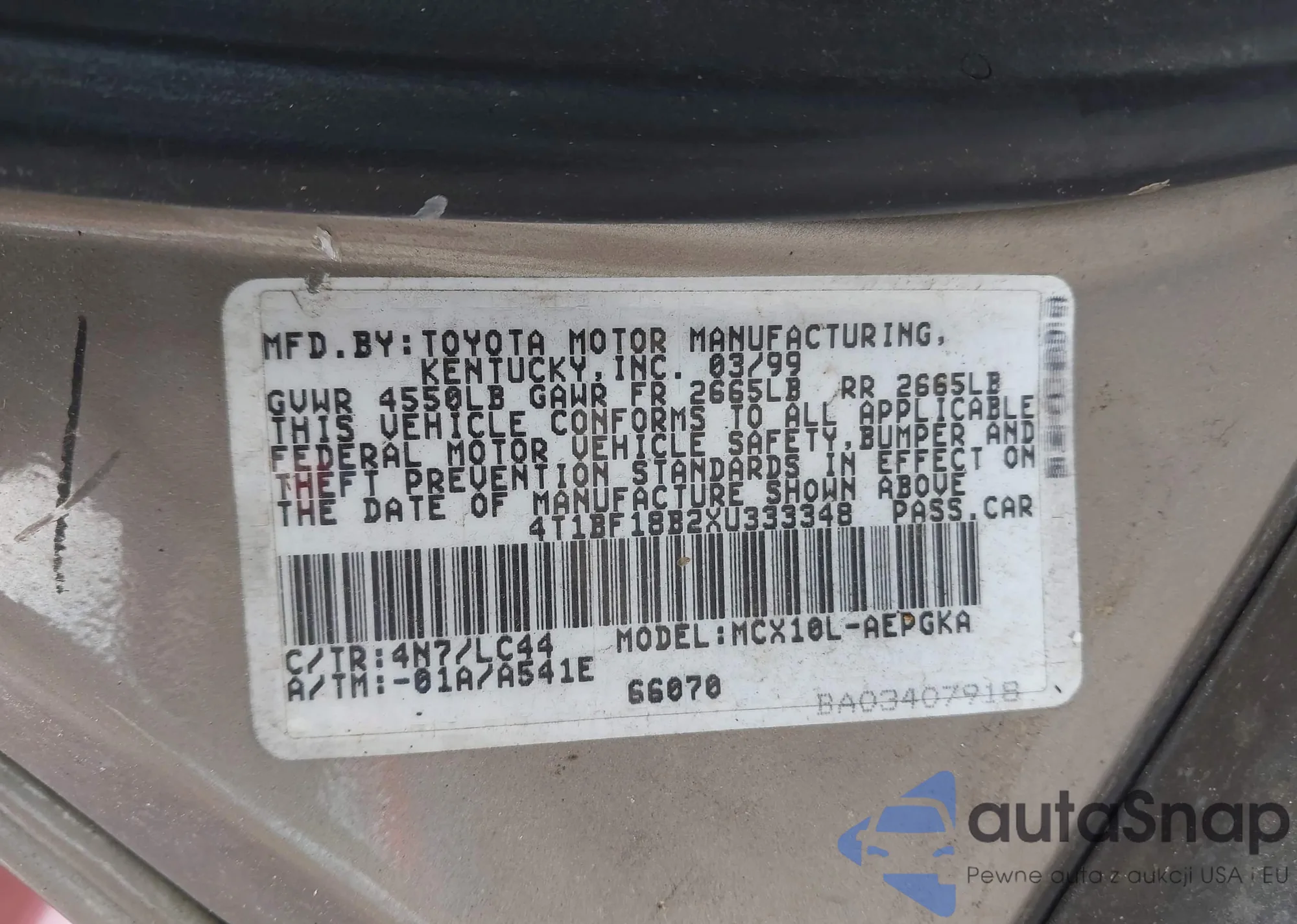 LOT: 42476873 VIN: 4T1BF18B2XU333348