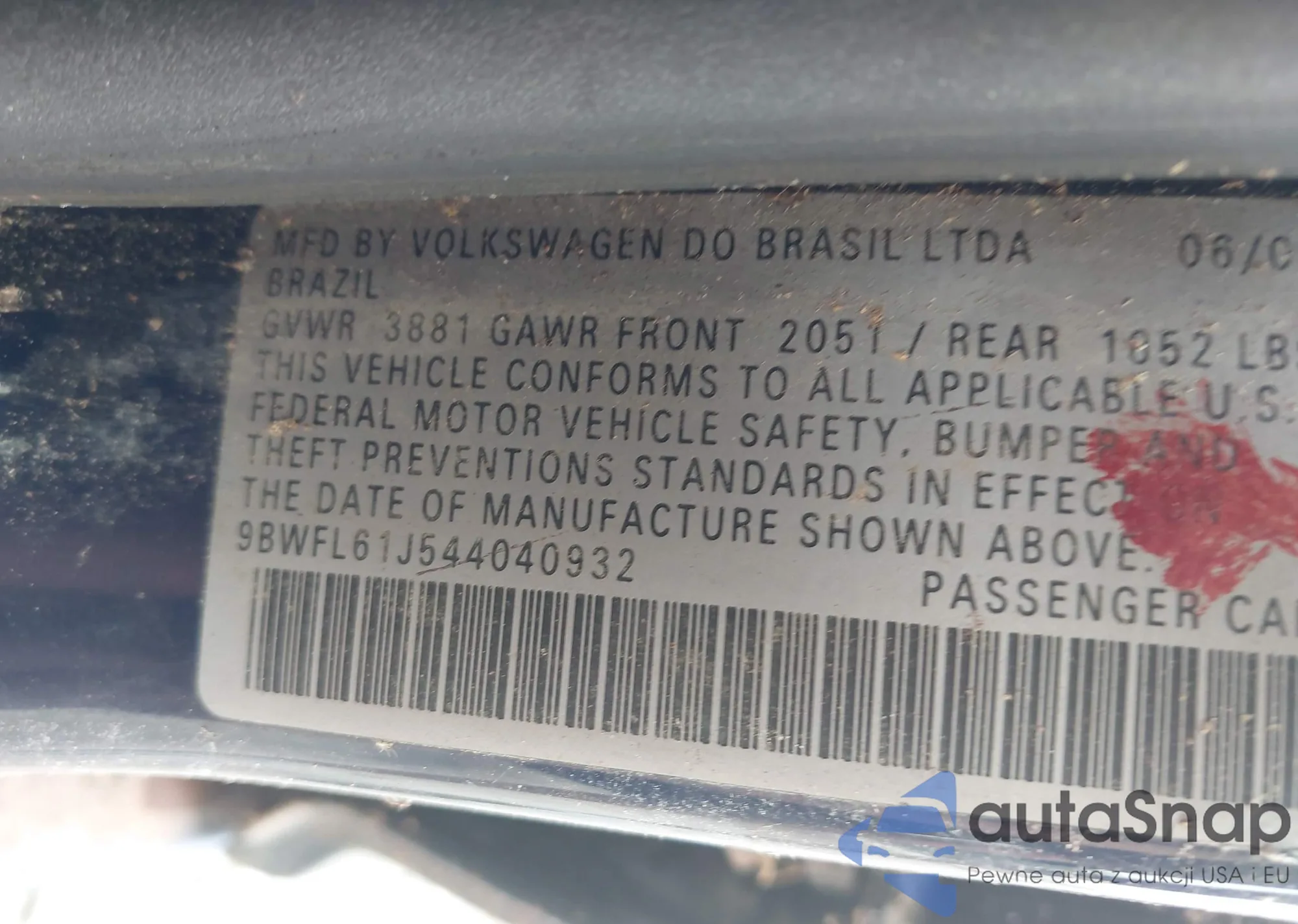 • VIN 9BWFL61J544040932
