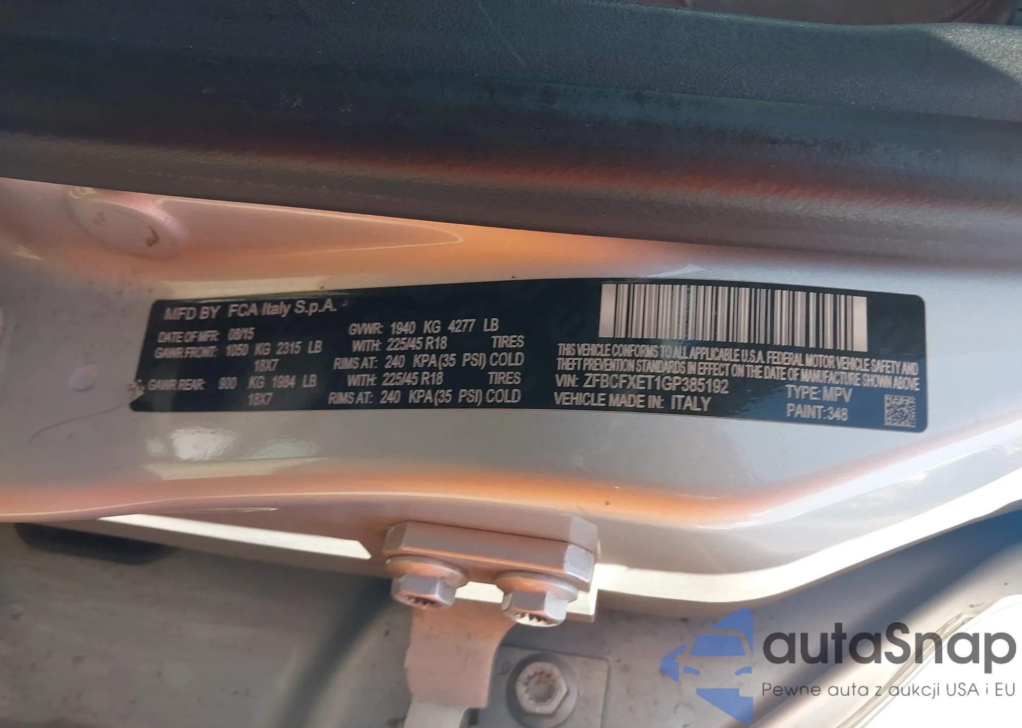 LOT: 42546692 VIN: ZFBCFXET1GP385192