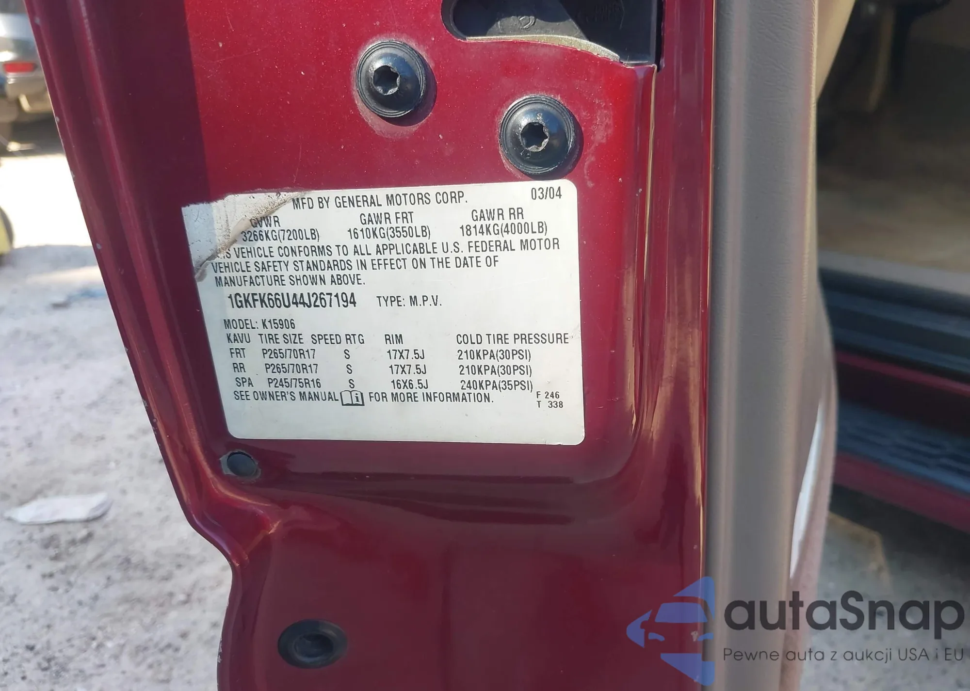 LOT: 42930161 VIN: 9BWFL61J544040932
