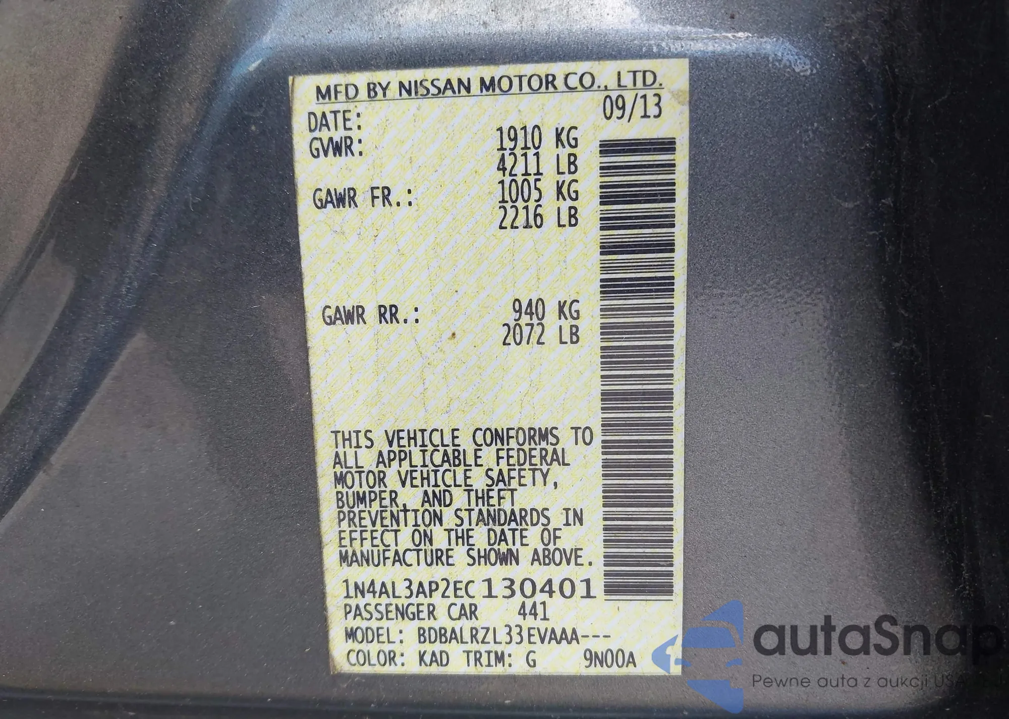LOT: 42053571 VIN: 1N4AL3AP9HC162637