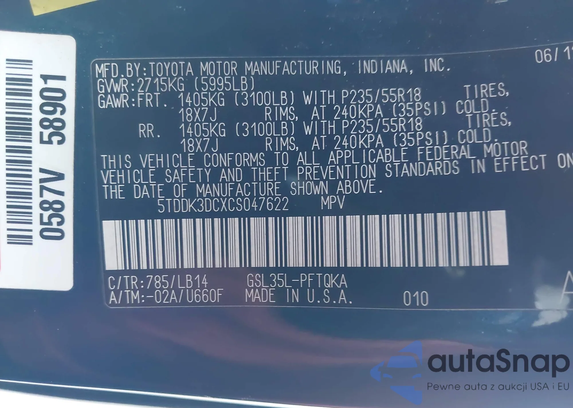 • VIN 5TDDK3DCXCS047622