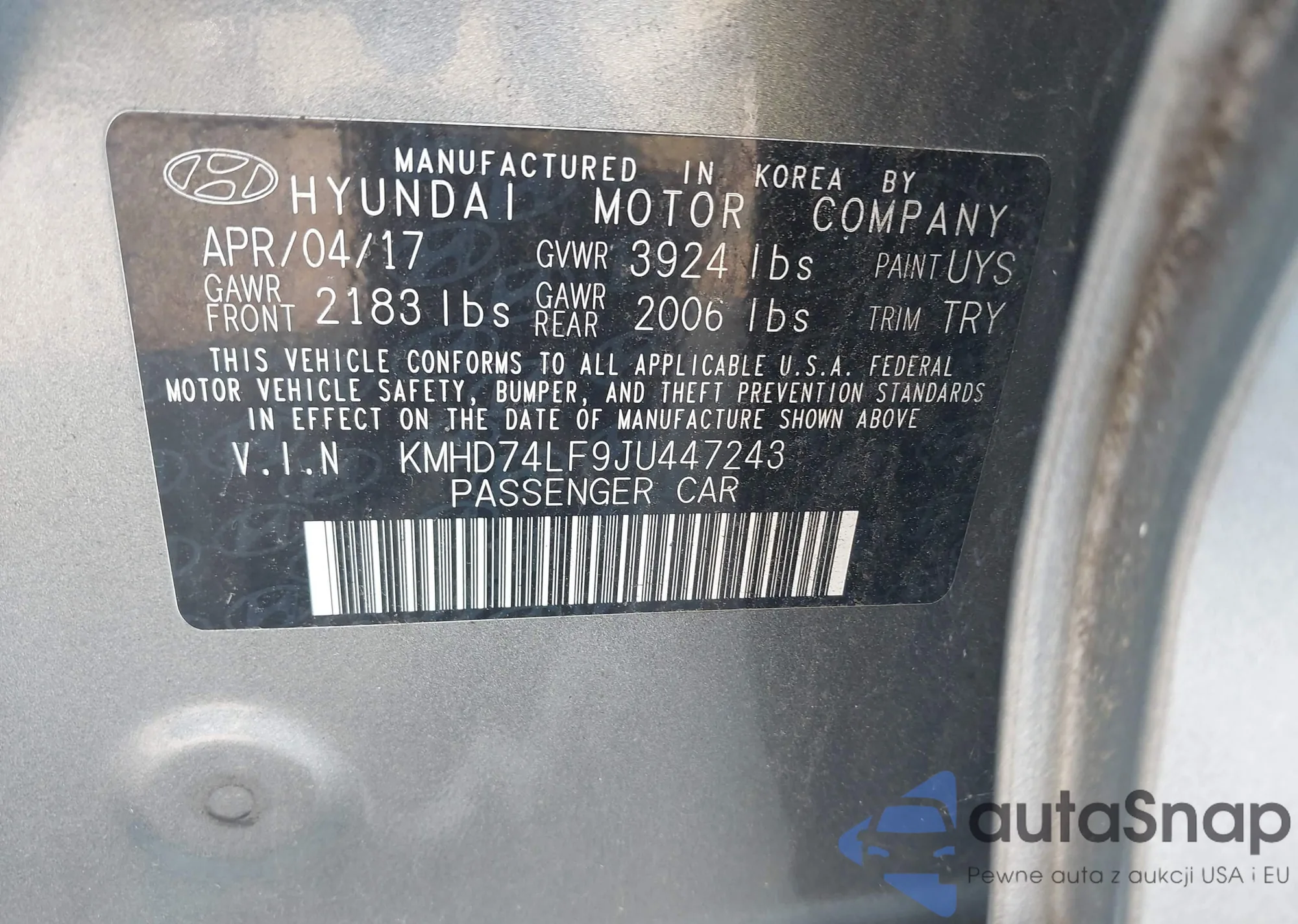 LOT: 42891872 VIN: KMHD74LF9JU447243