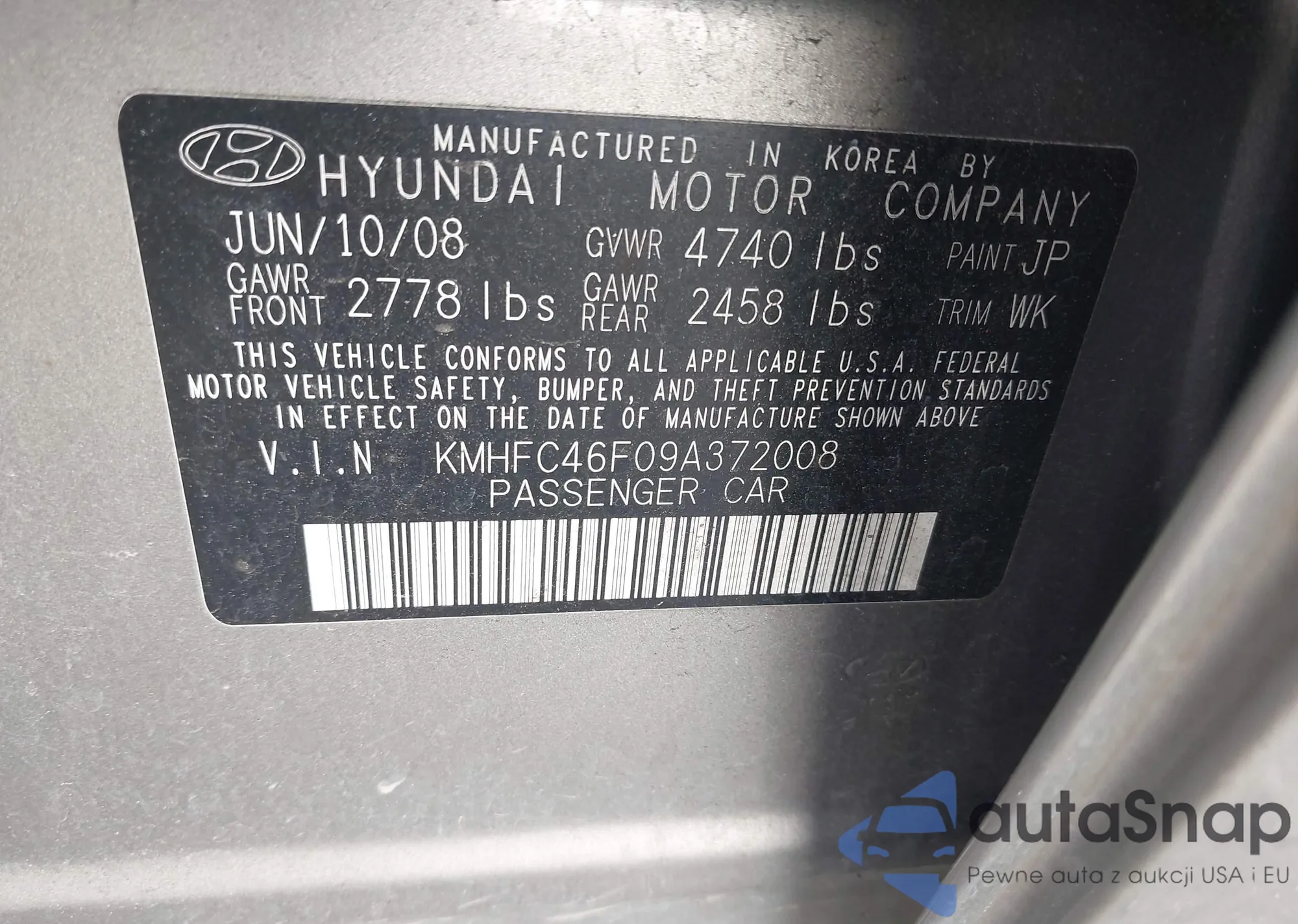 LOT: 42324933 VIN: KMHFC46F09A372008