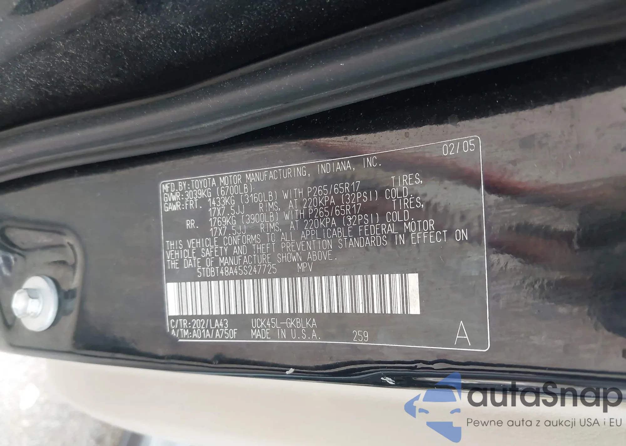 LOT: 42905417 VIN: 5TDBT48A45S247725