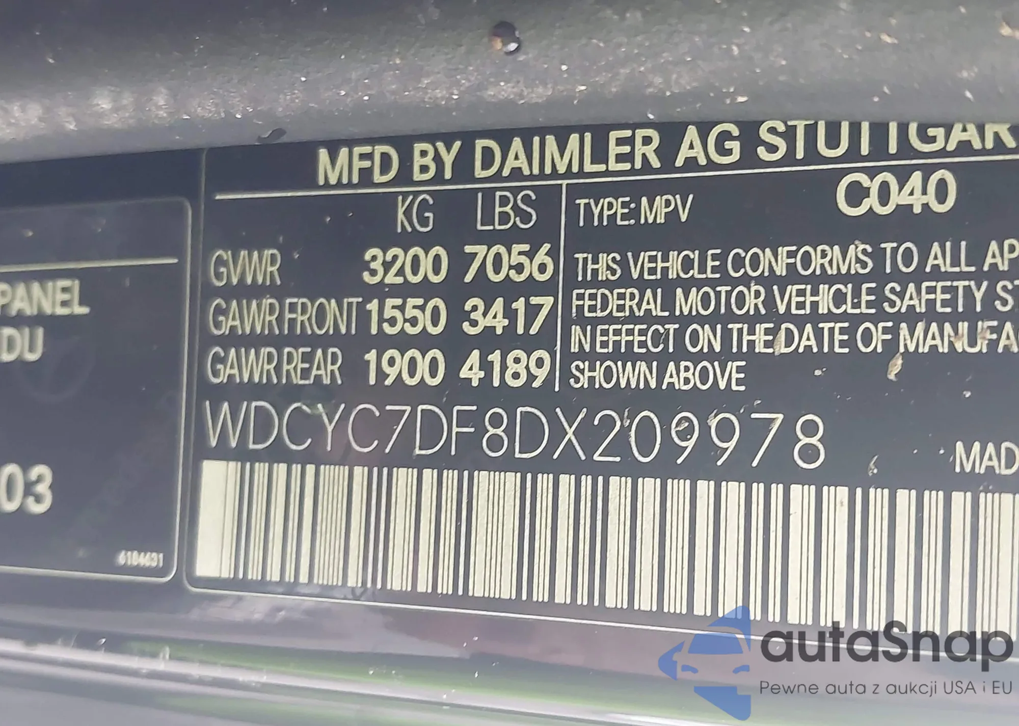 • VIN WDCYC7DF8DX209978