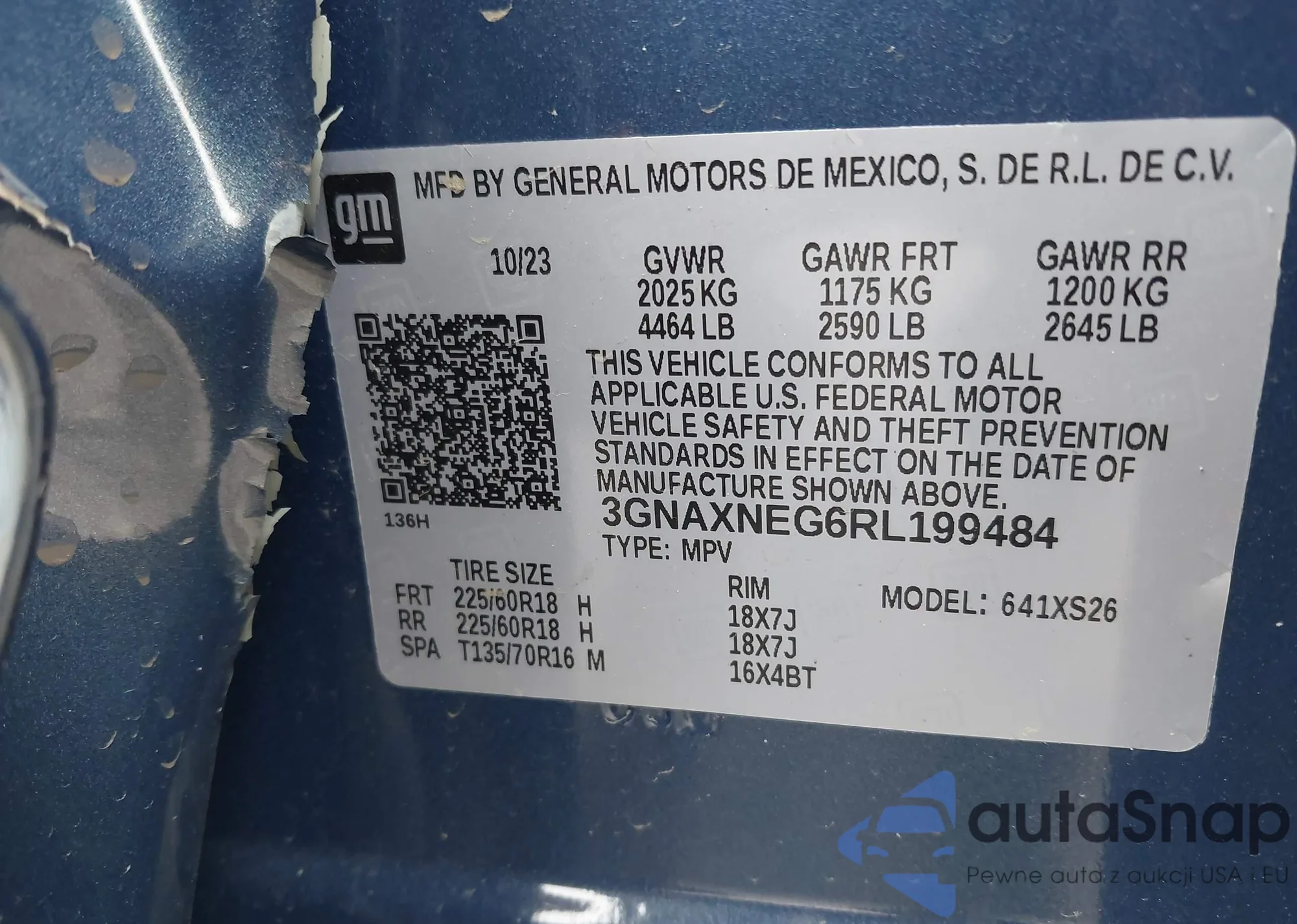 LOT: 42770162 VIN: 3GNAXNEG6RL199484