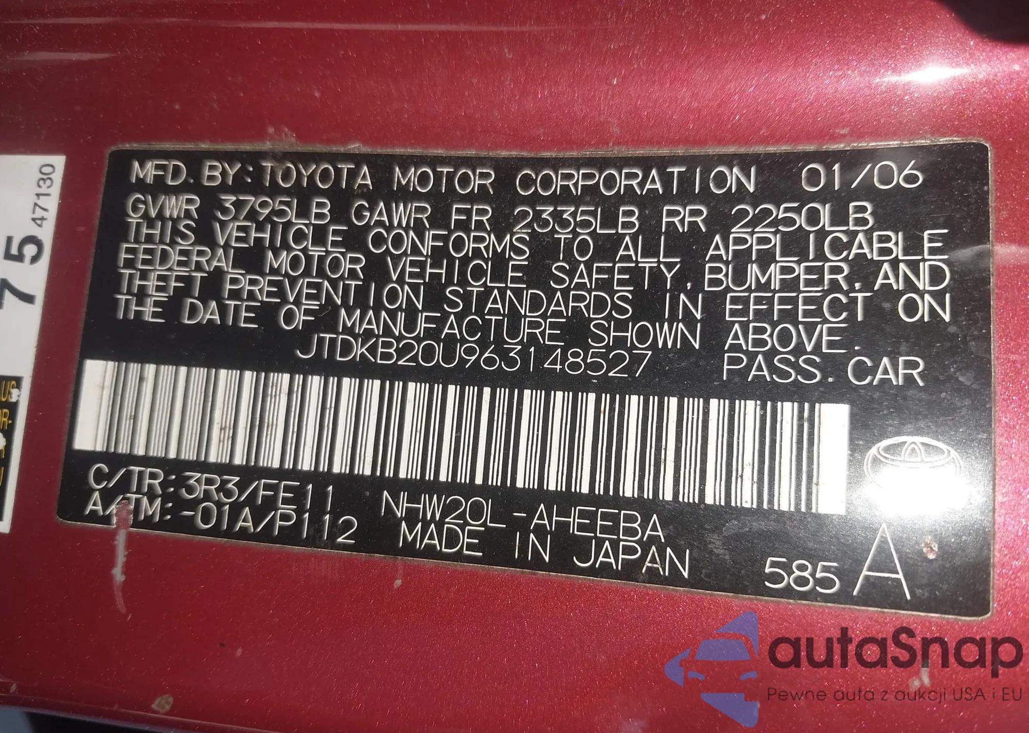 LOT: 42633967 VIN: JTDKB20U883417331
