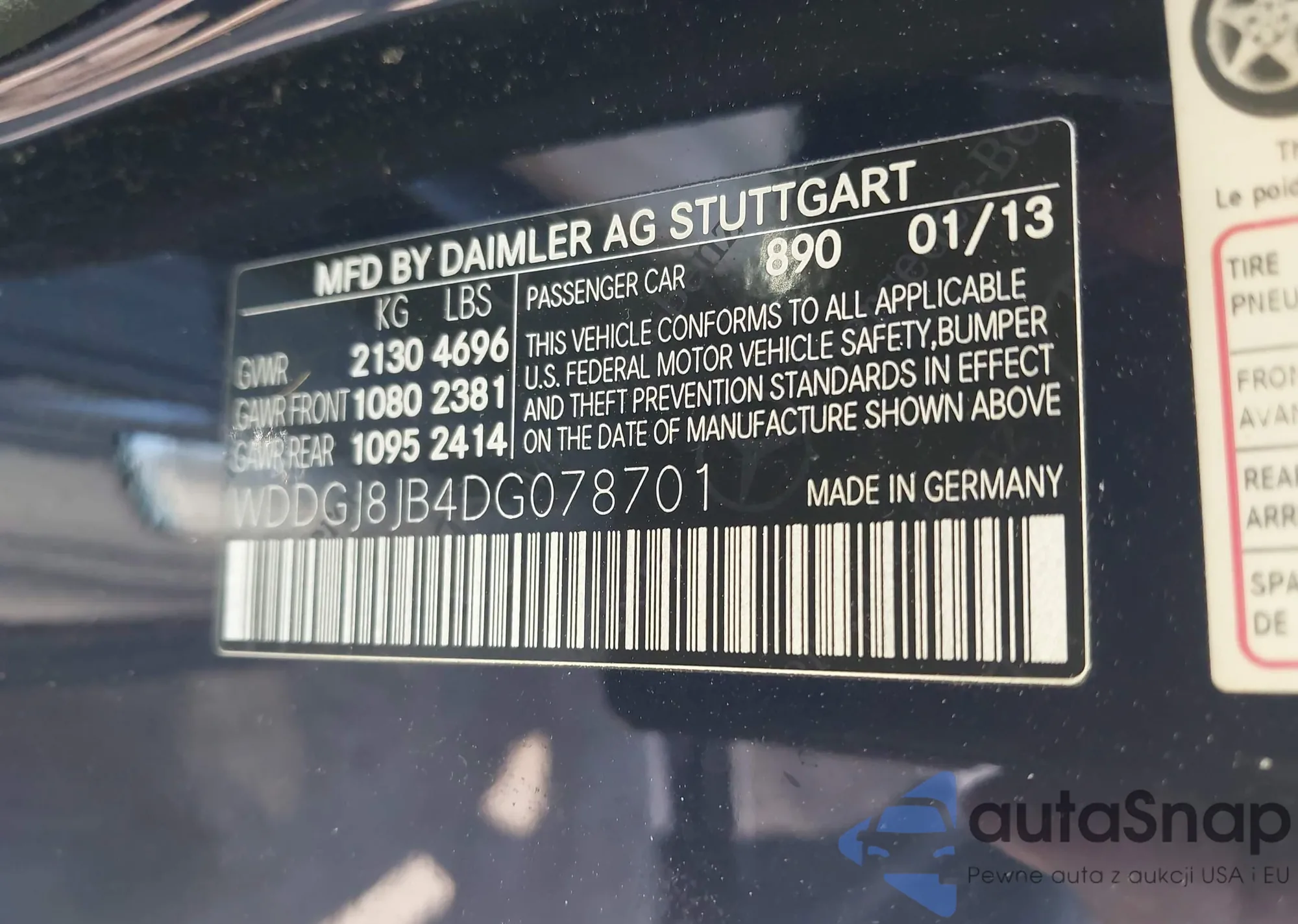 • VIN WDDGJ8JB4DG078701