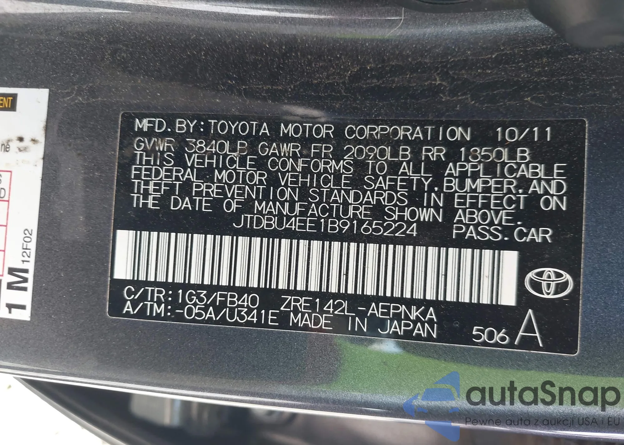LOT: 42576903 VIN: JTDEPRAE8LJ058808