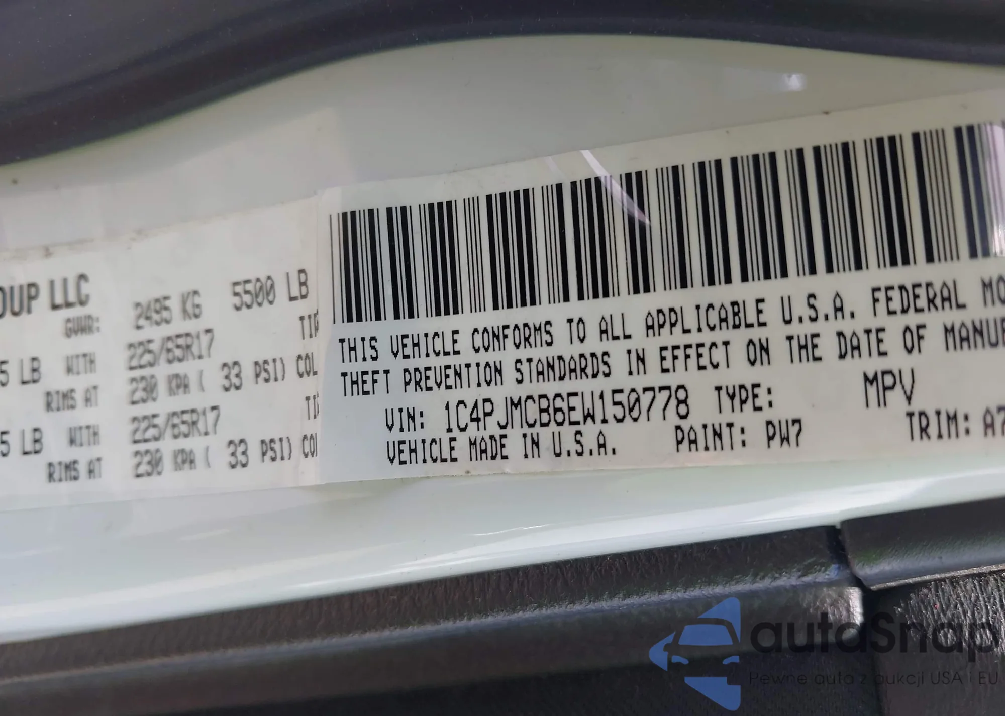 LOT: 42551345 VIN: 1C4PJMCB6EW150778