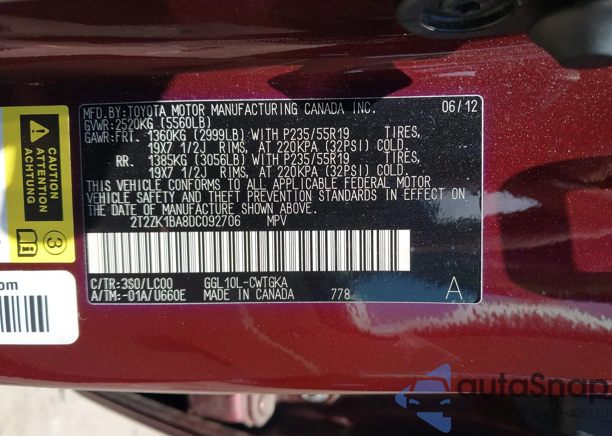 • VIN 1GCCSBF98B8135093