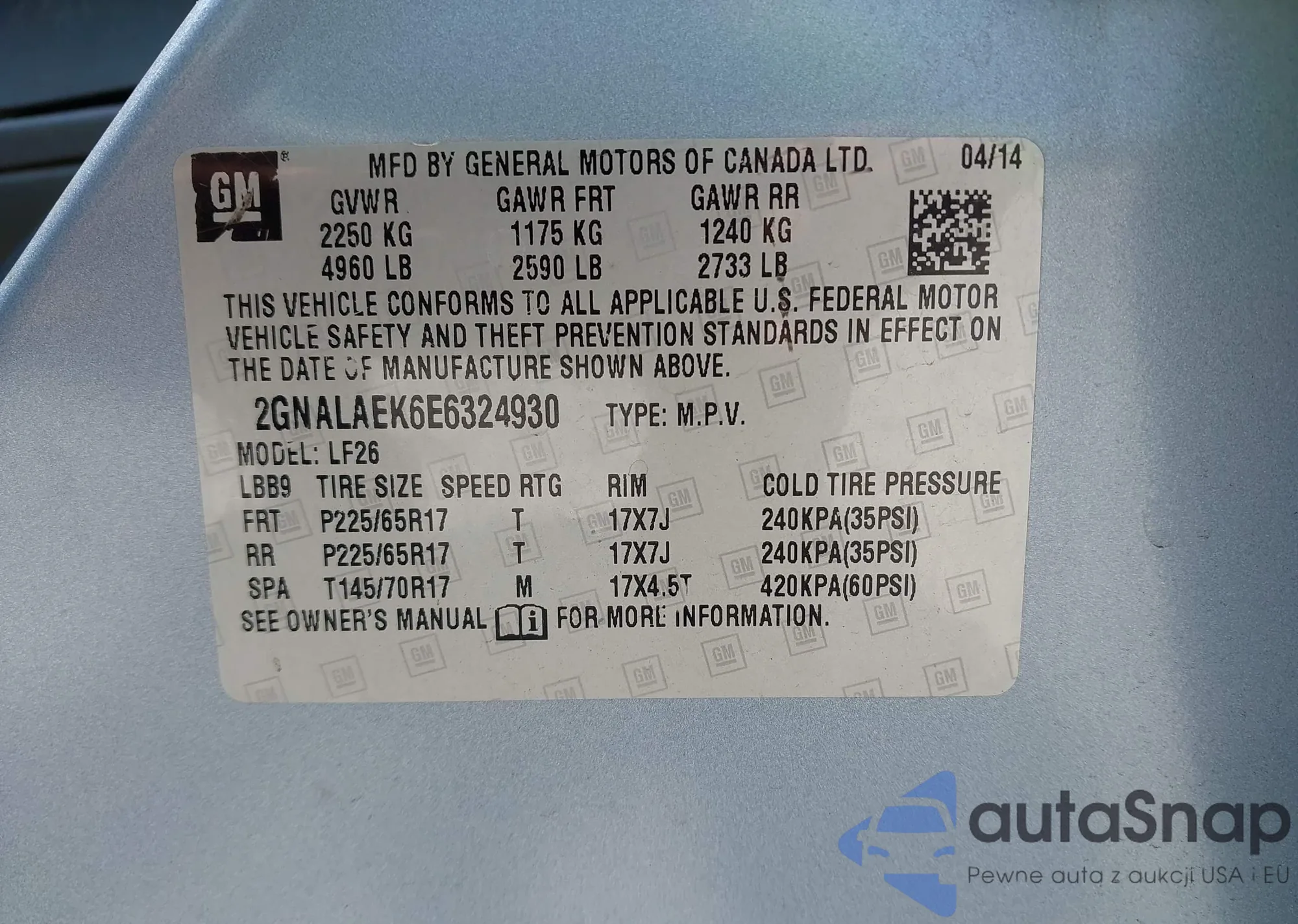 • VIN 2GNALAEK6E6324930