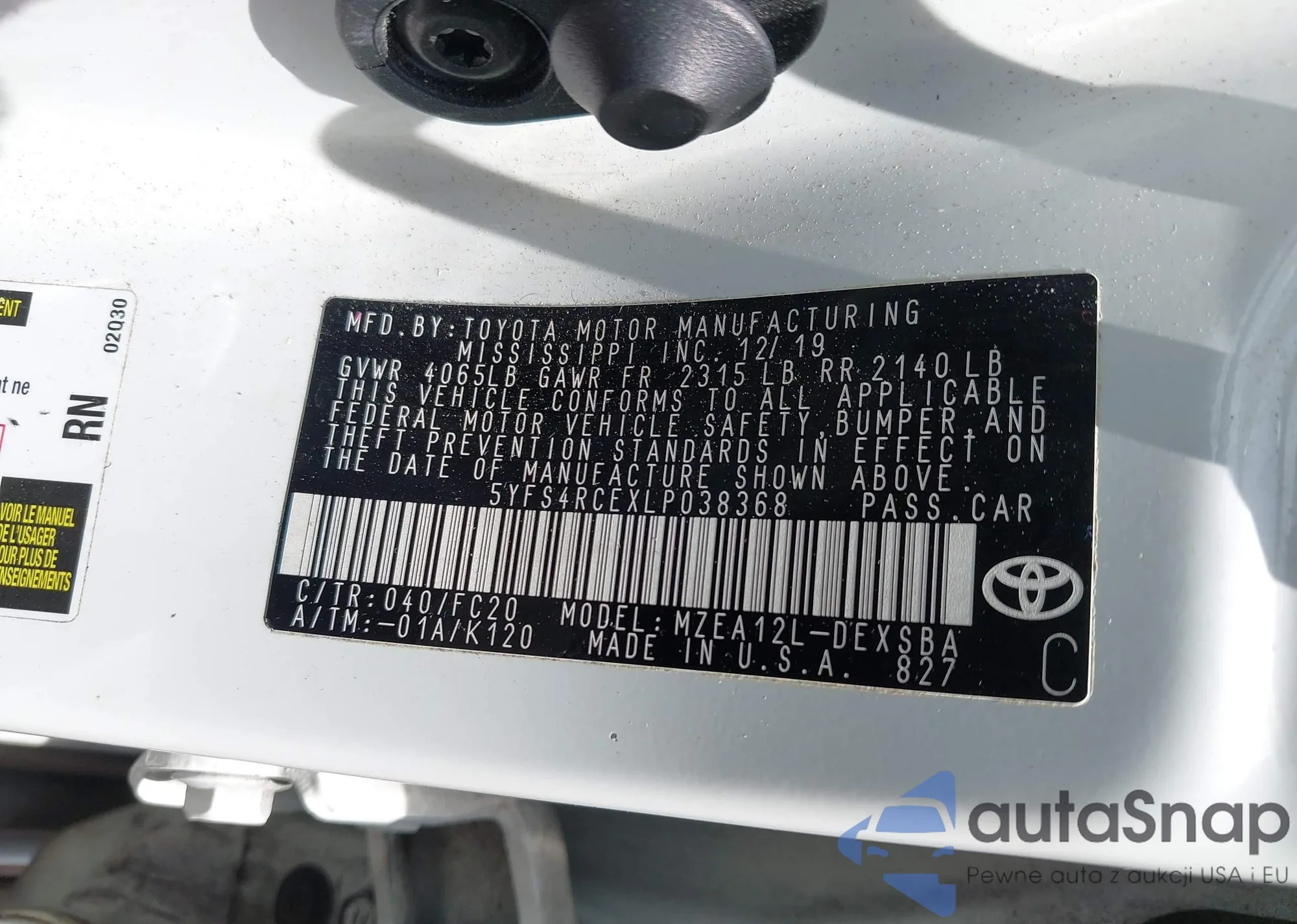LOT: 42488685 VIN: JTDBT4K37CL025897